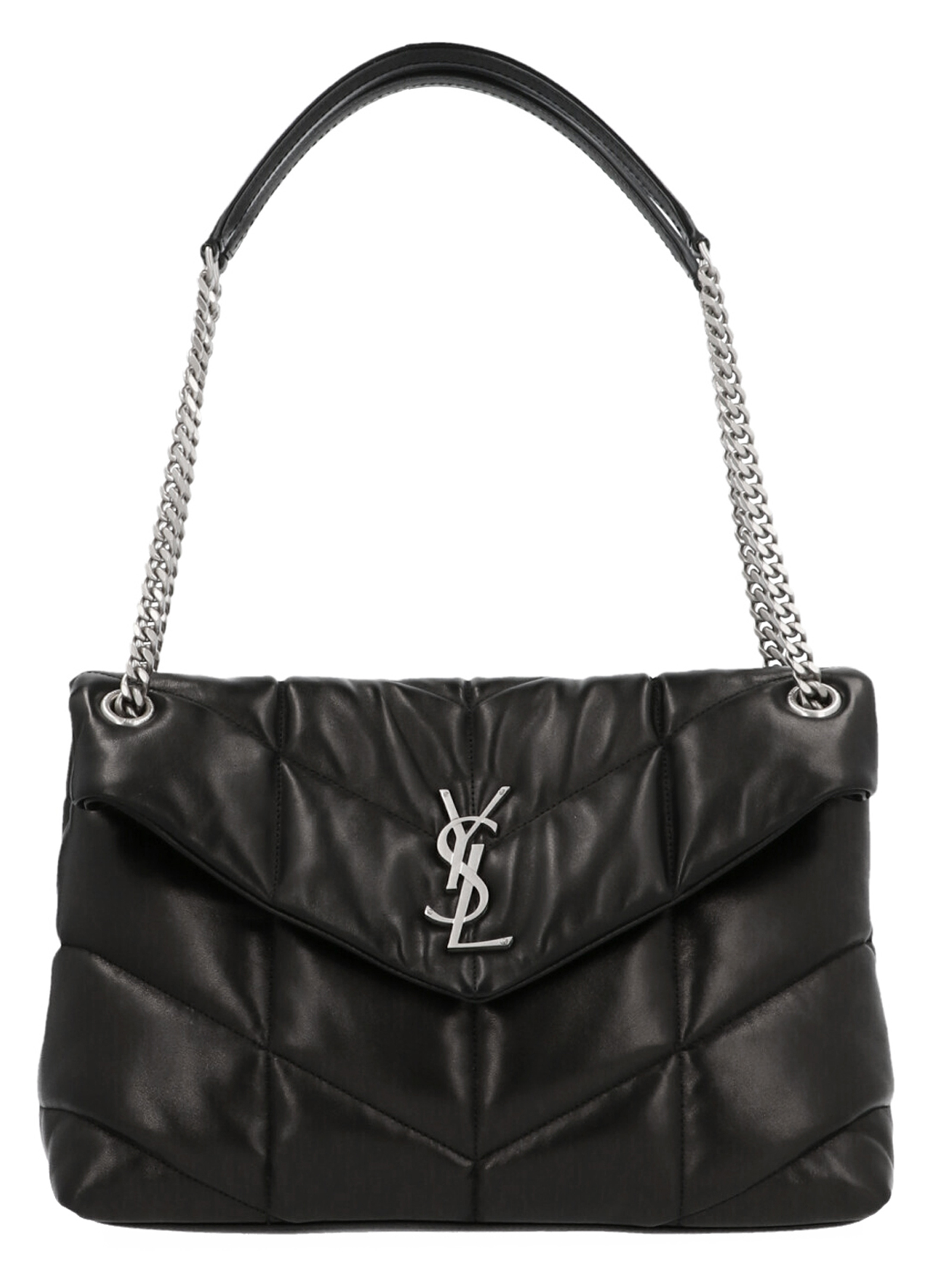 Saint Laurent ‘Puffer loulou’ shoulder bag in matelassé leather with logo, chain shoulder strap and silver hardware.