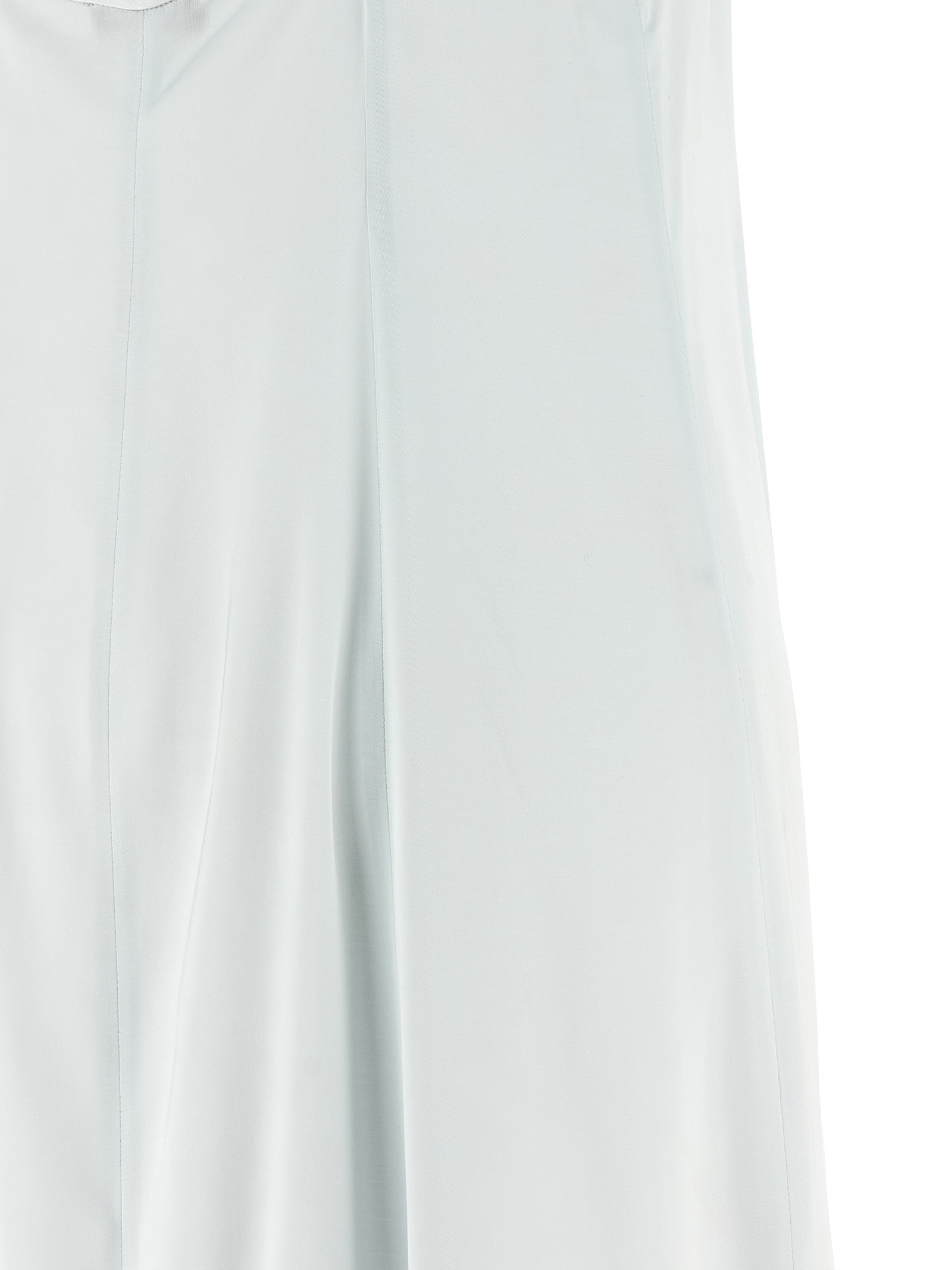 Long dress in fluid viscose satin, flared silhouette, wide round neckline at the front, thin straps and back detail with metal ‘Punto Luce’, wide back square neckline with cut-out, side zip closure, lining.
