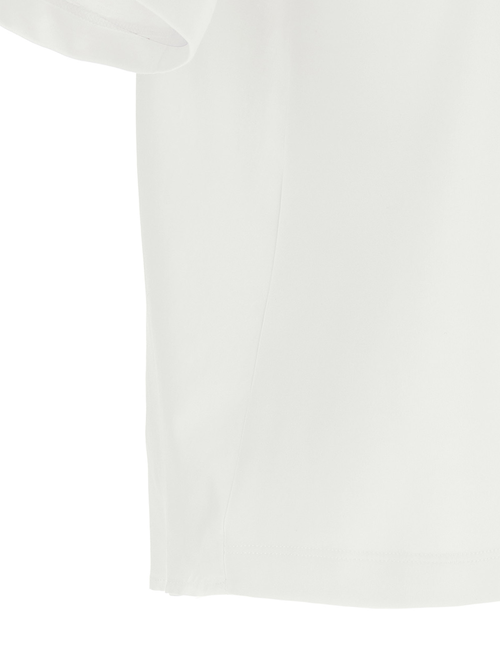 T-shirt consisting of cotton jersey front, trompe l’oeil pocket with metal ‘Punto Luce’, short sleeves and double layer back in cotton organza with pleats, crew neck.