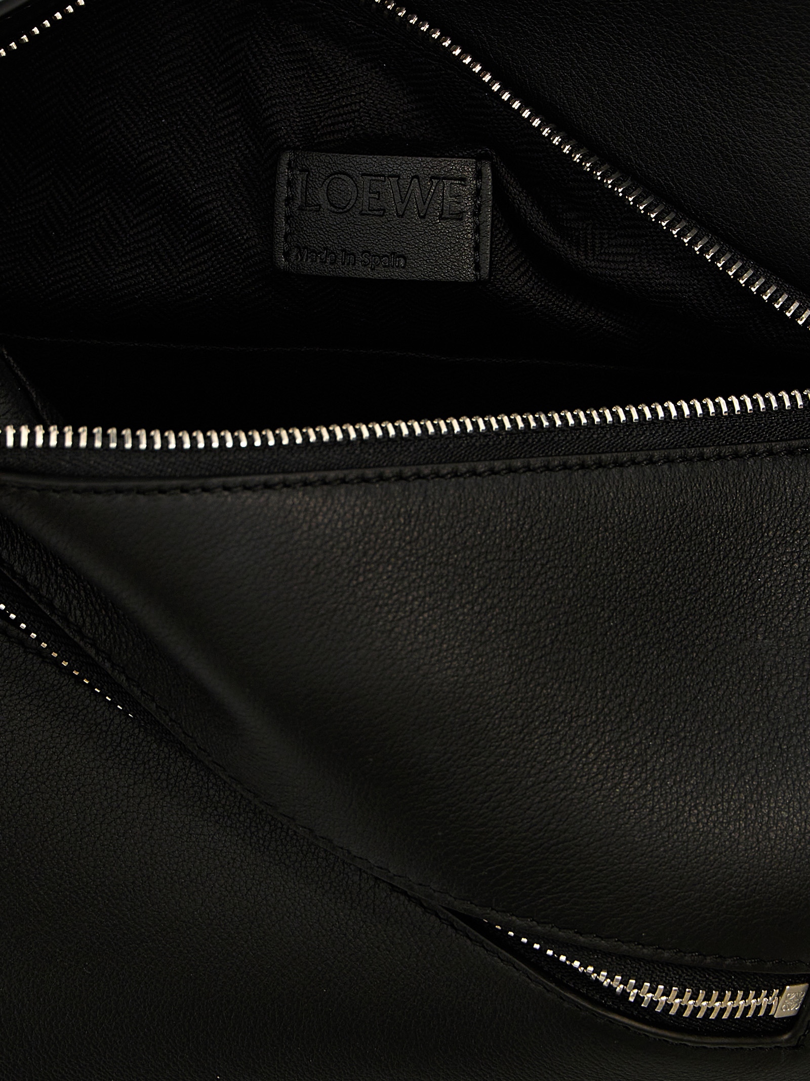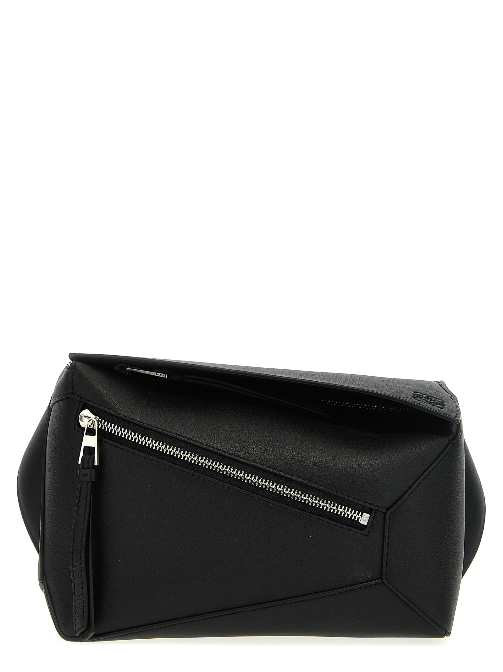 Small leather ‘Puzzle’ fanny pack, zip closure, adjustable shoulder strap.