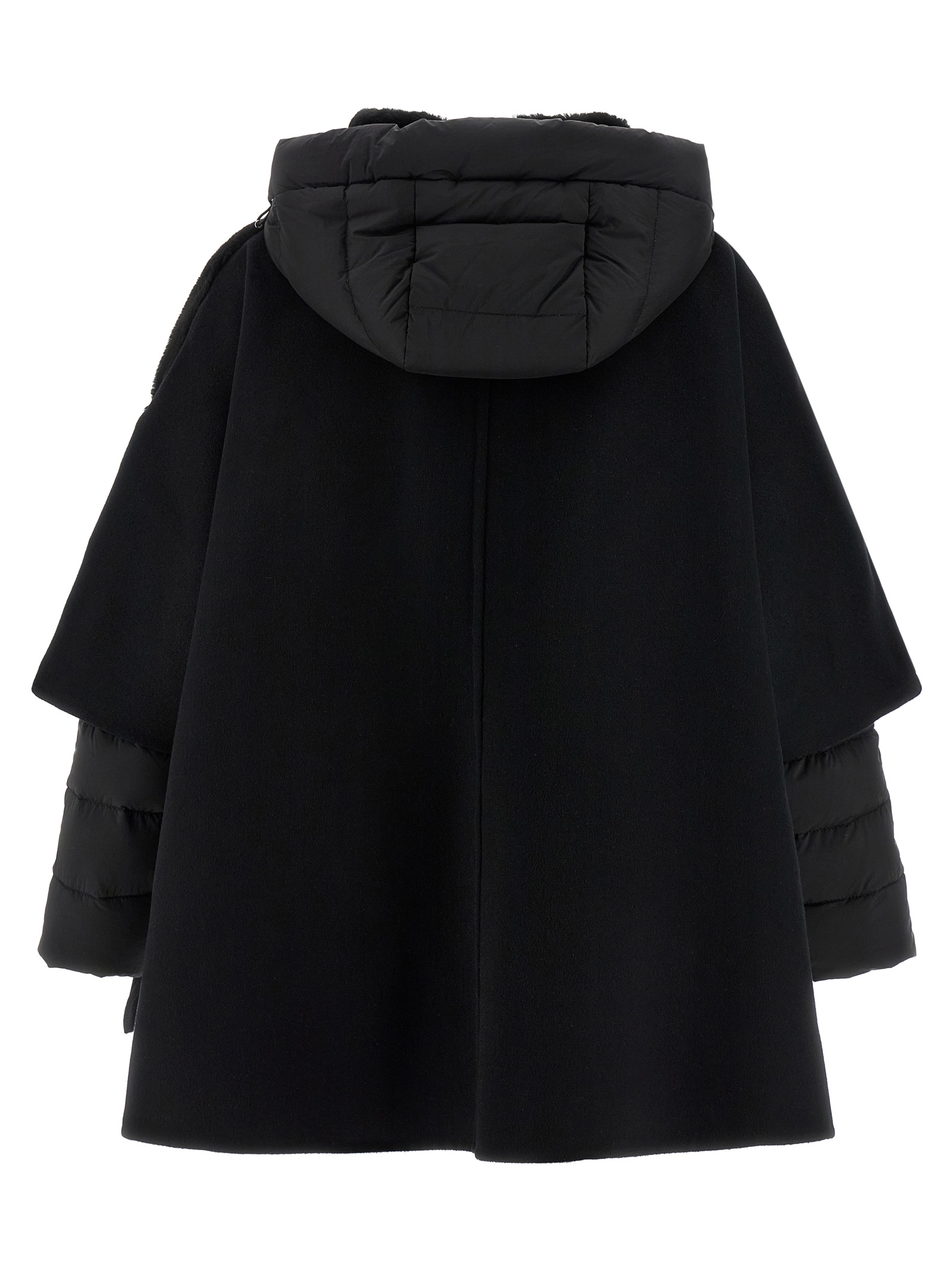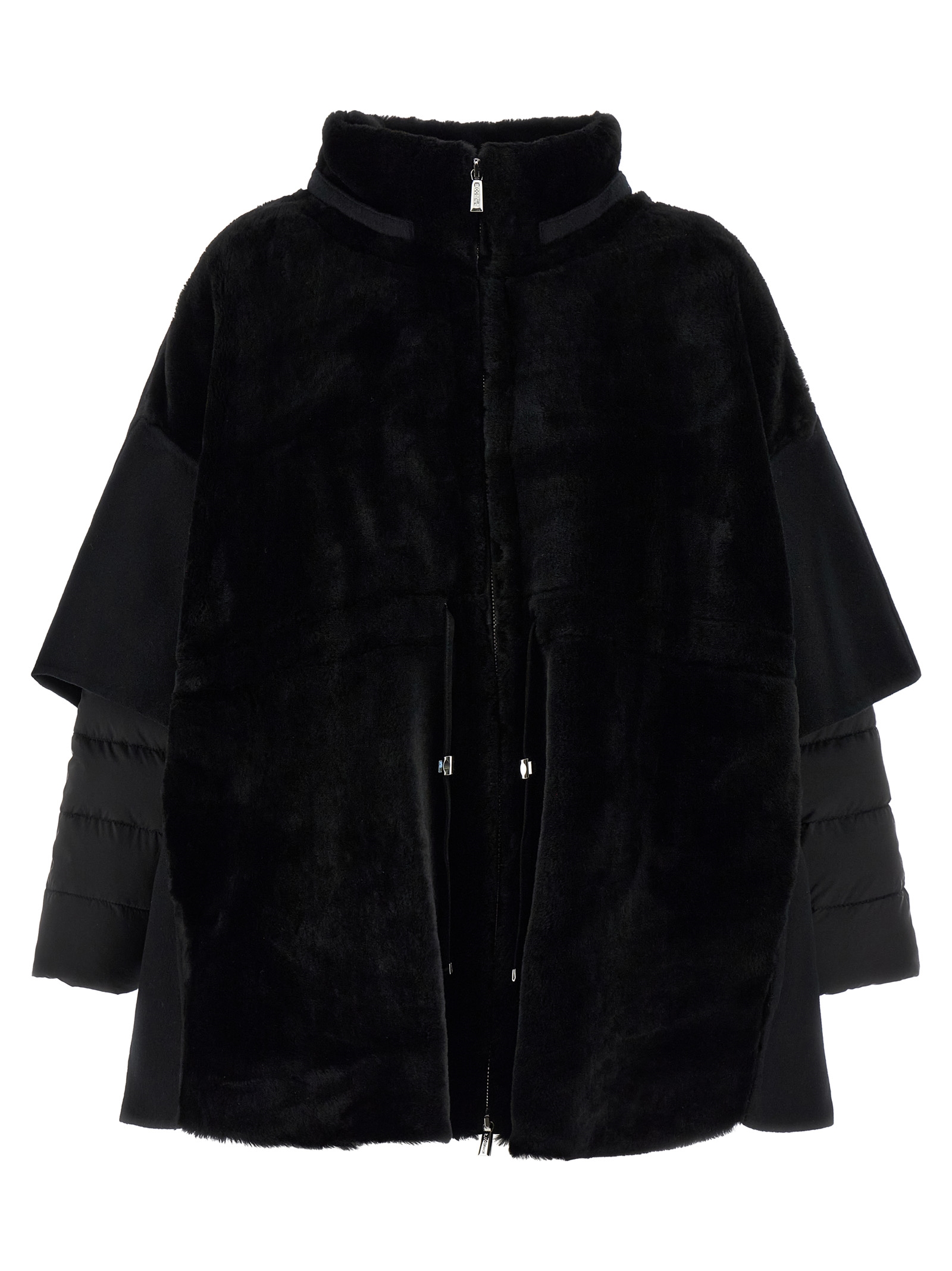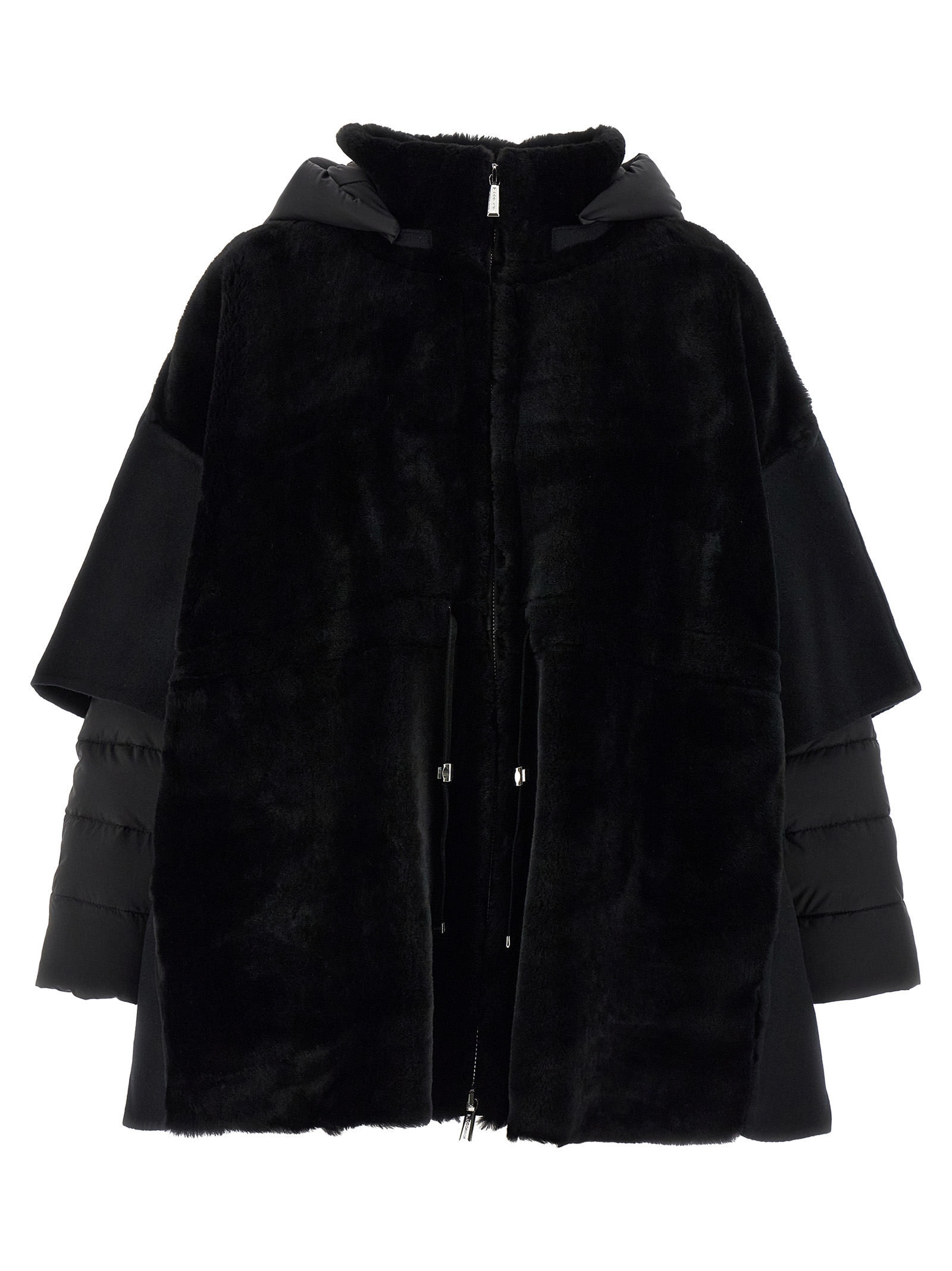 ‘Raja’ sheepskin fur and wool jacket, hood with adjustable sleeves with button and inner down jacket with removable zip sleeves, removable padded and quilted hood, front zip closure, drawstring at the waist, side pockets.