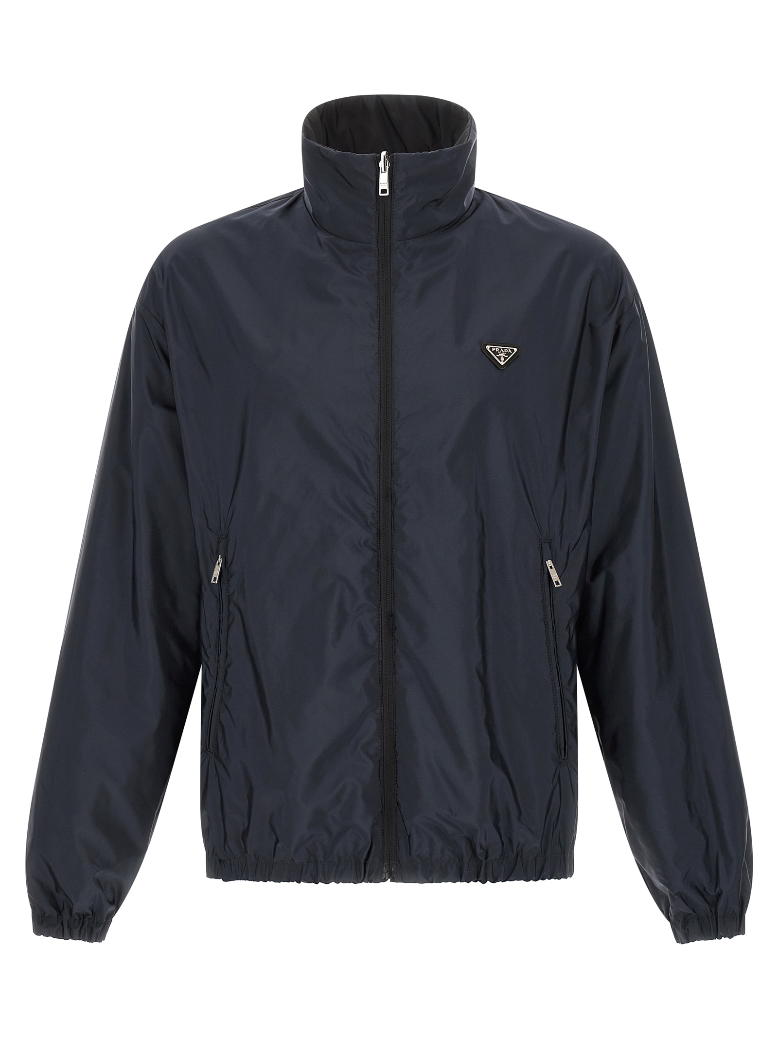 Reversible Re-Nylon Feather jacket, triangle logo in enameled metal and front zip closure, high neck, long sleeves with elastic cuffs, elastic hem, unlined.