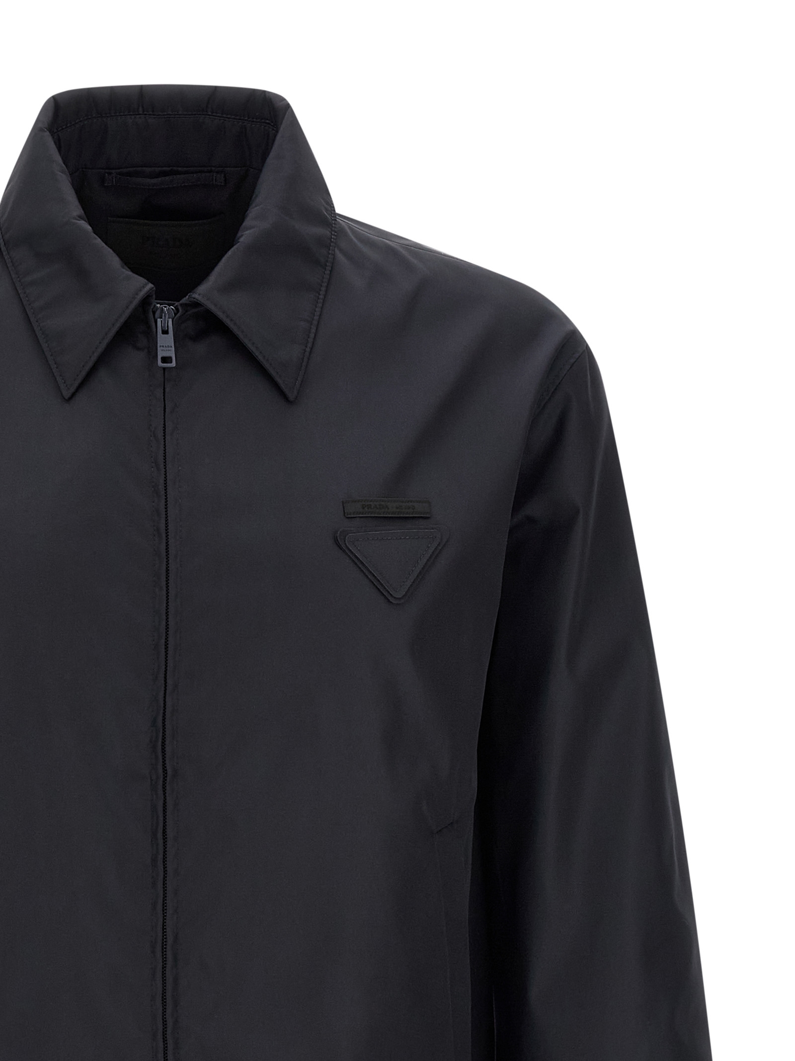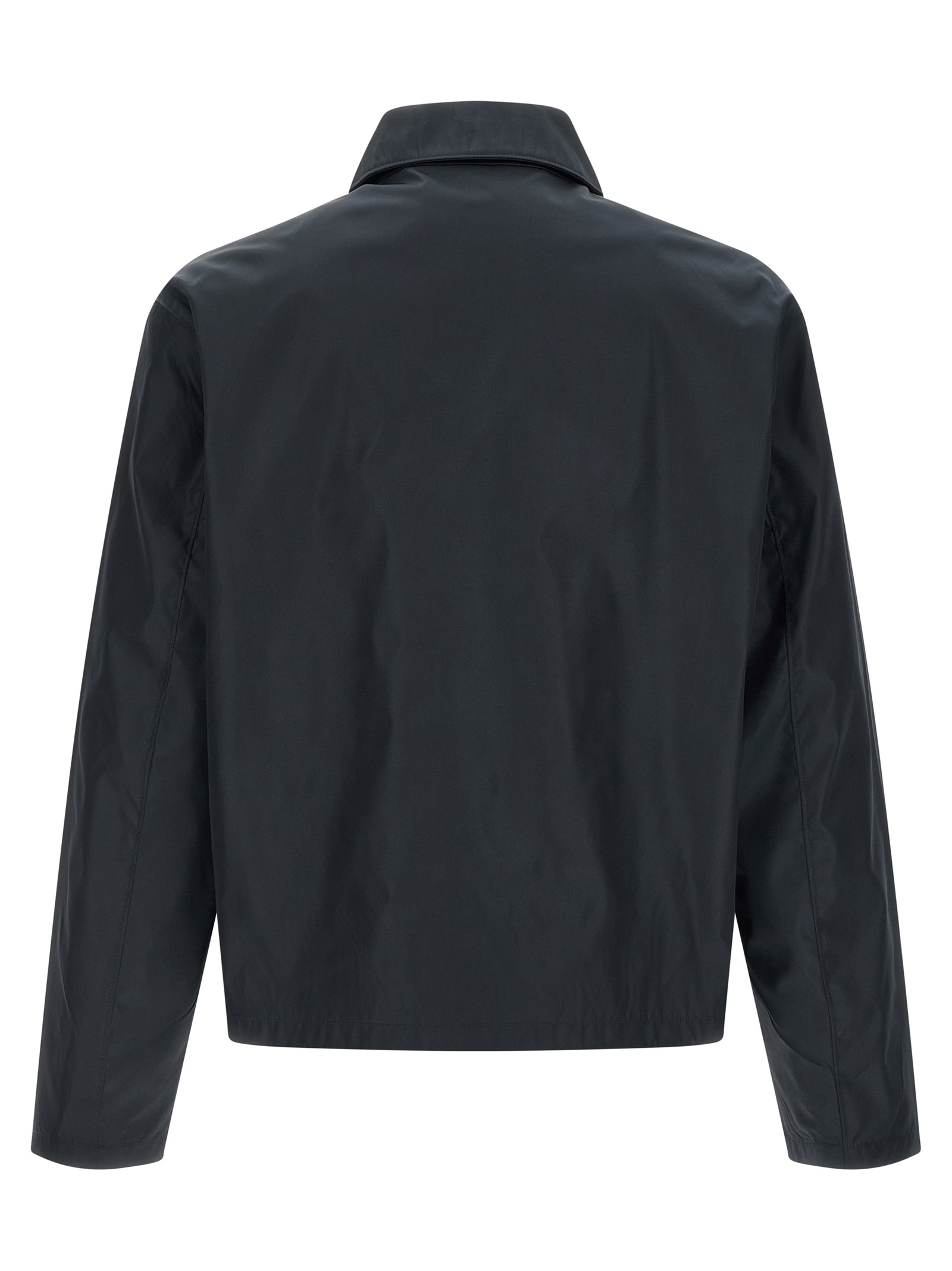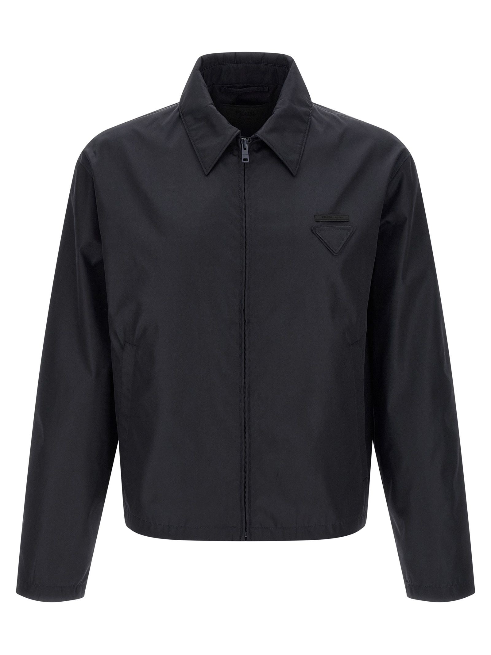 Re-Nylon jacket with cotton lining, logo patch and triangle fabric logo on the front, shirt collar, pockets, front zip closure, long sleeves, drawstring on the hem.