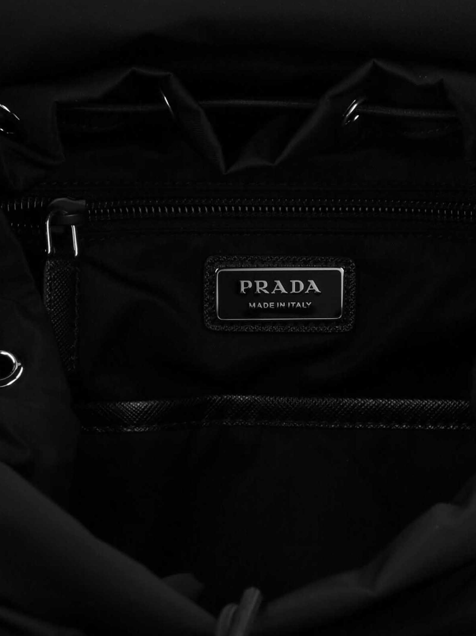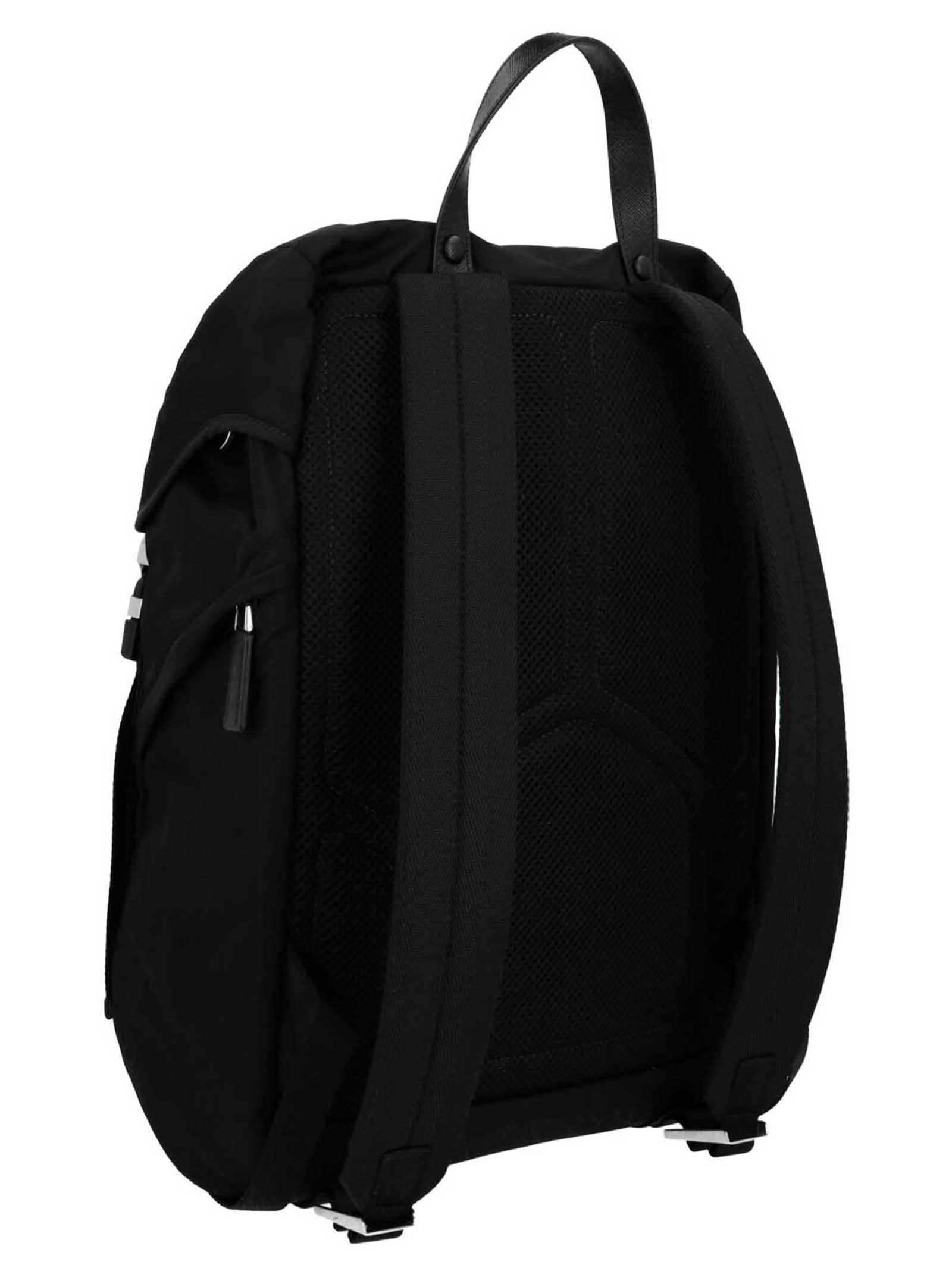 Re-nylon backpack with metal triangle logo at the front and adjustable shoulder straps.