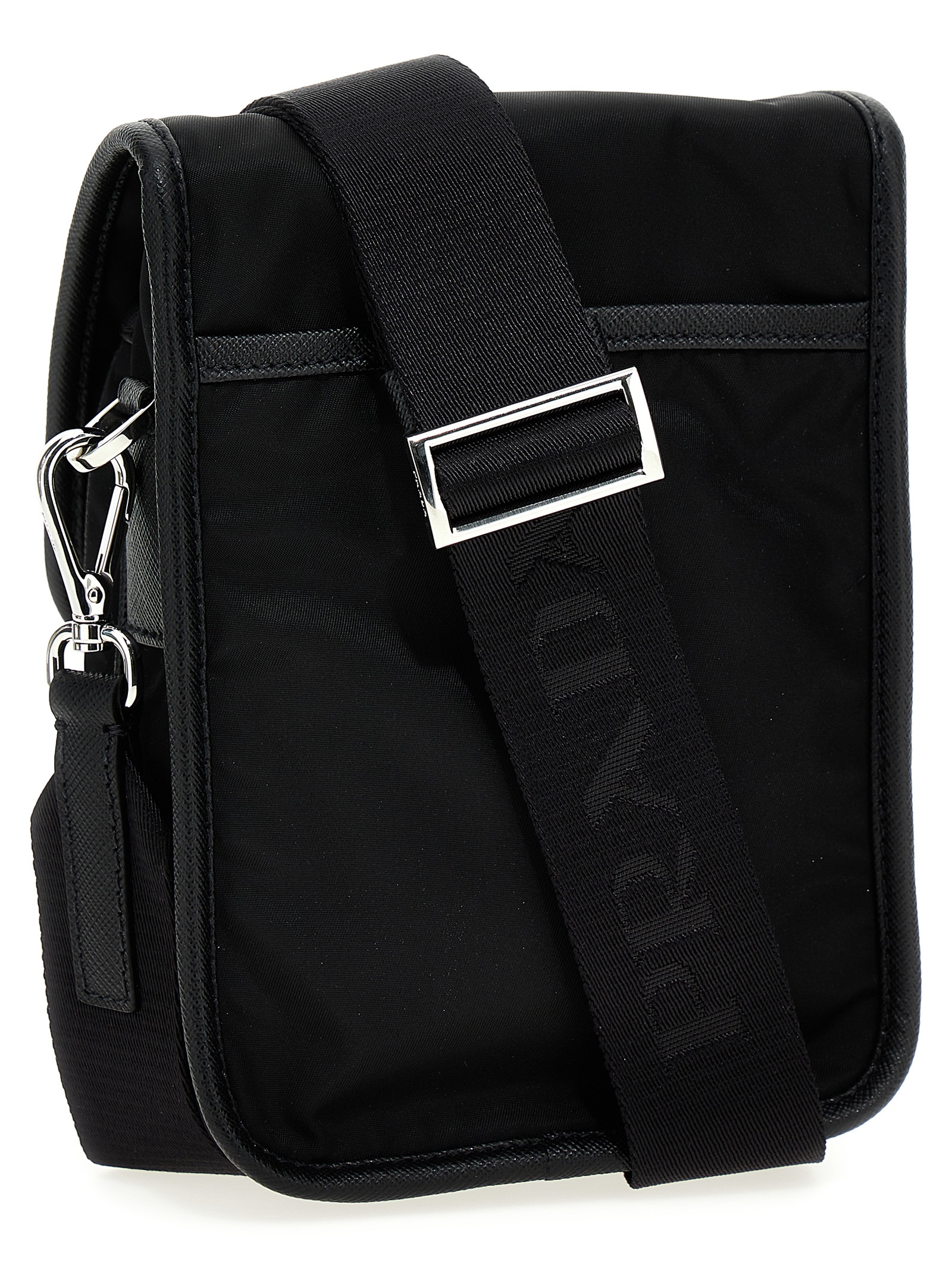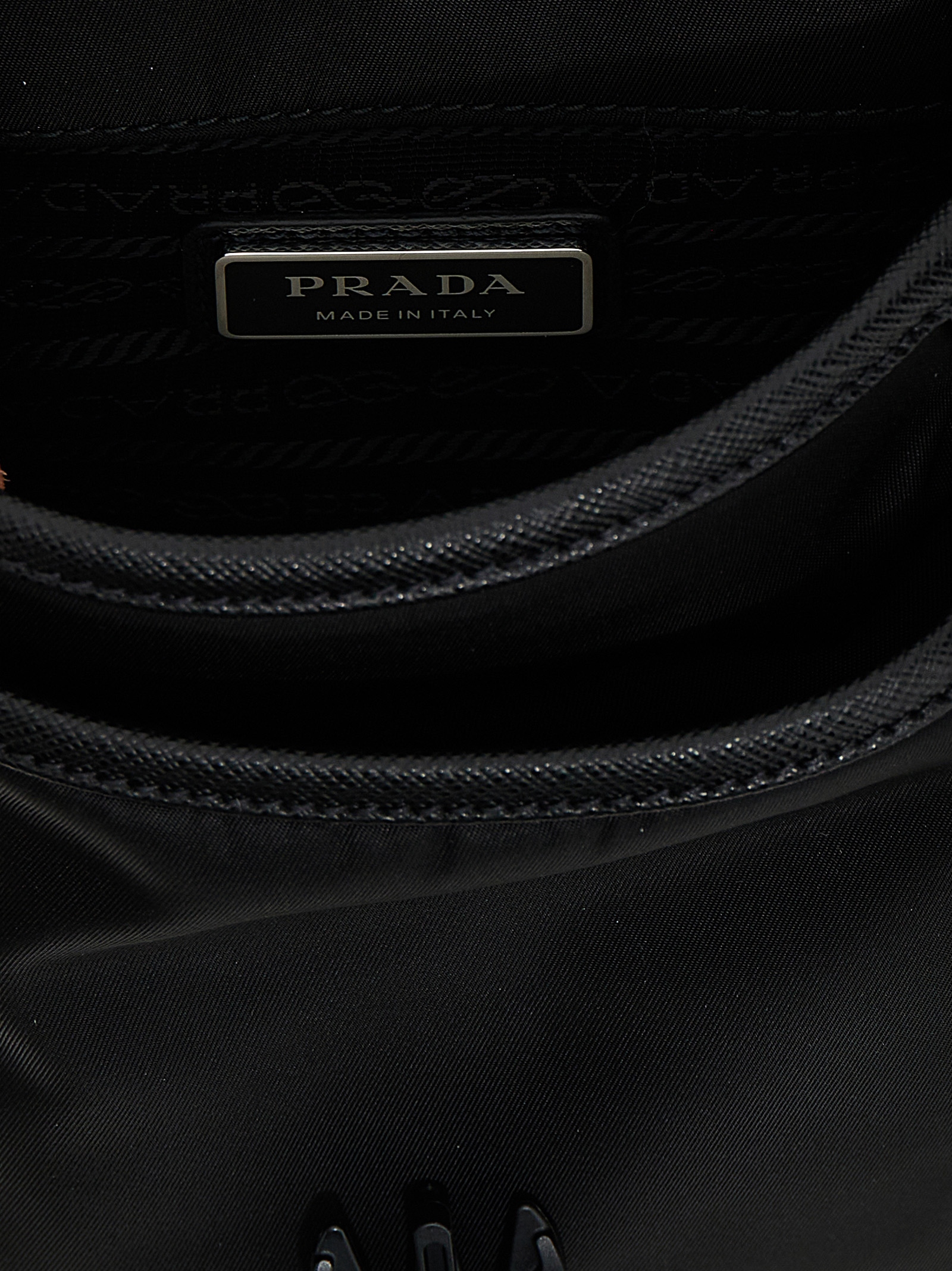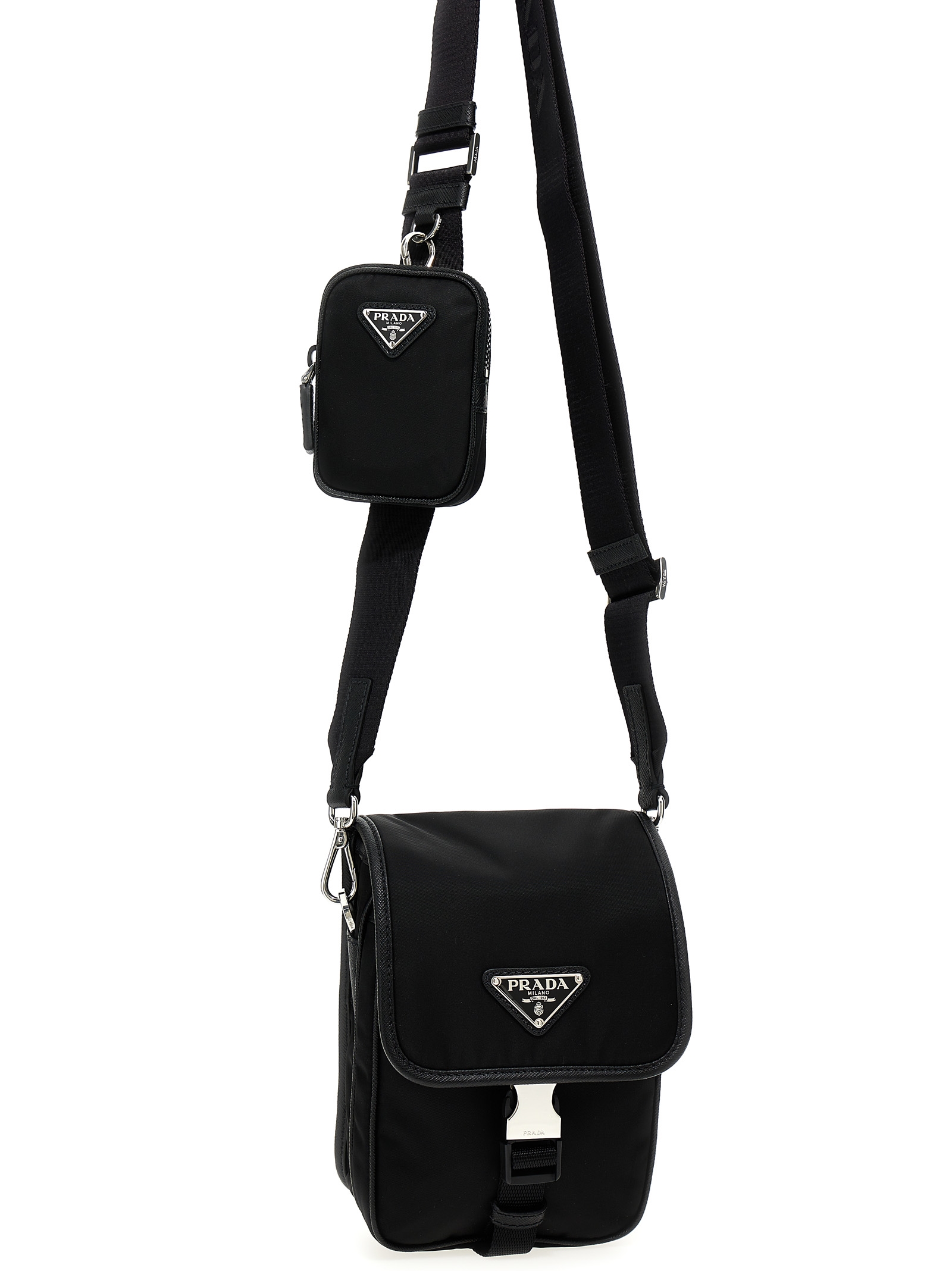 Re-Nylon crossbody bag with leather details, triangle logo in enameled metal and adjustable shoulder strap with removable pouch.
