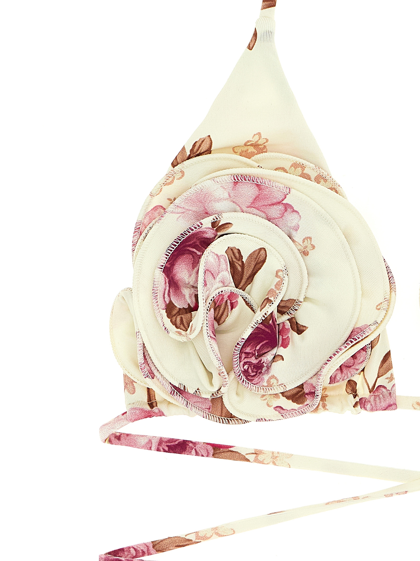 ‘RE26’ triangle floral print bikini top with flower appliqué and adjustable closure with knotted sliding laces.