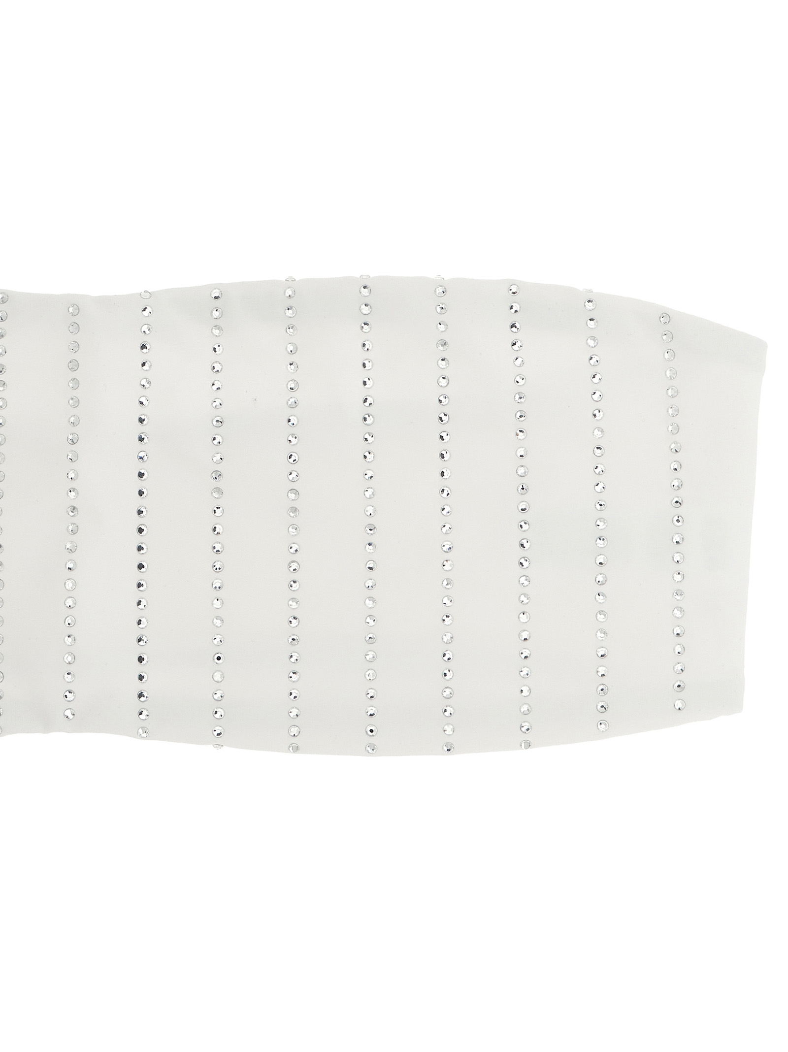 ‘Rebby’ stretch fabric bikini top with front rhinestone appliqué, band style with side slats.