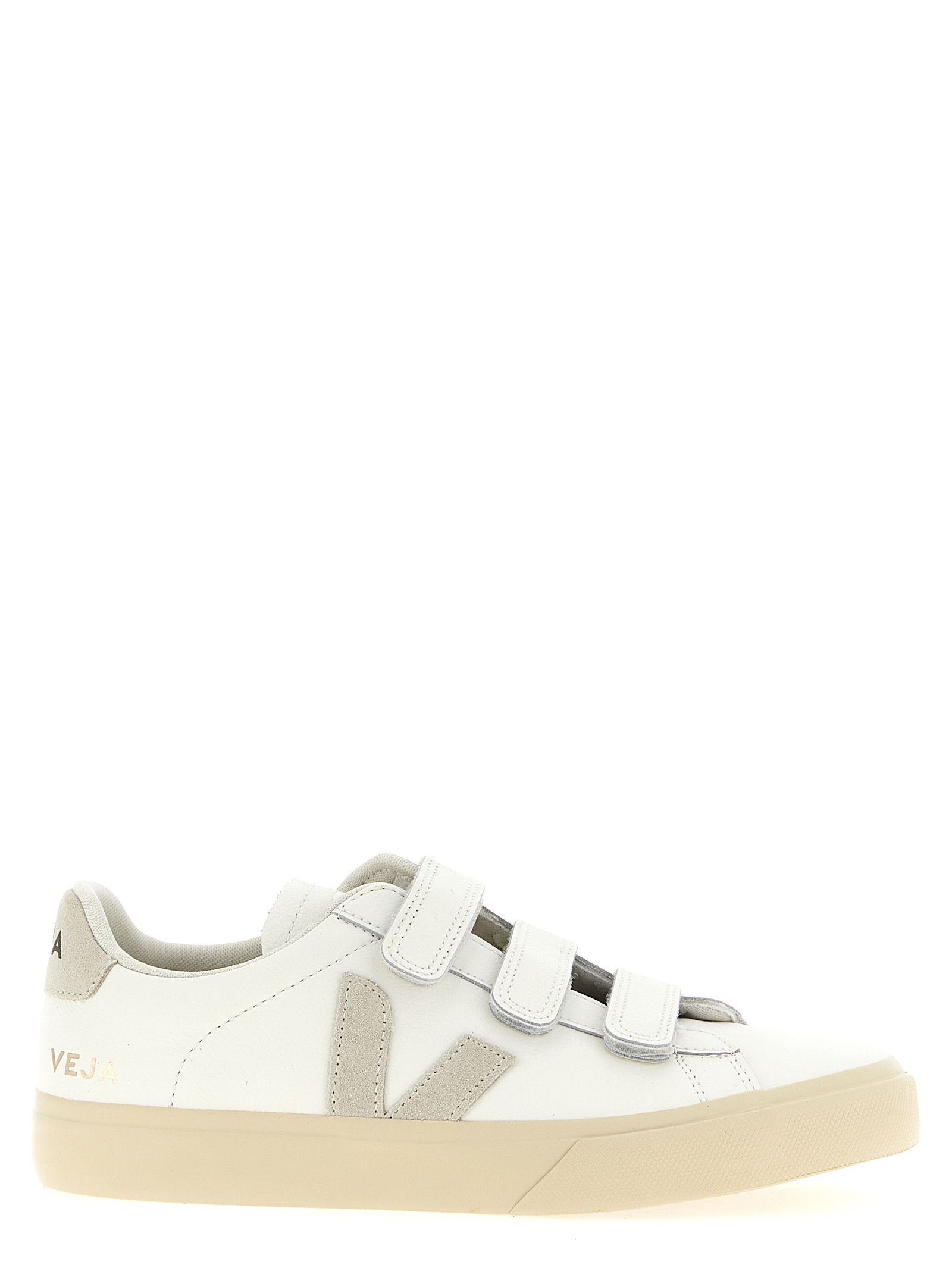 ChromeFree cowhide ‘Recife’ sneakers with contrast suede heel and side logo, strap closure, rubber sole.