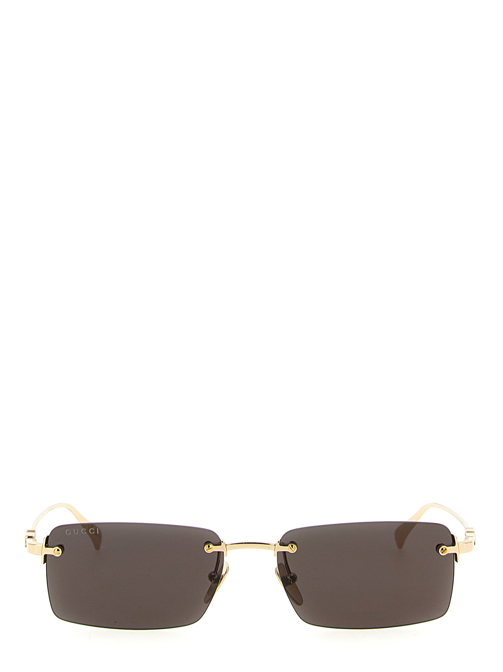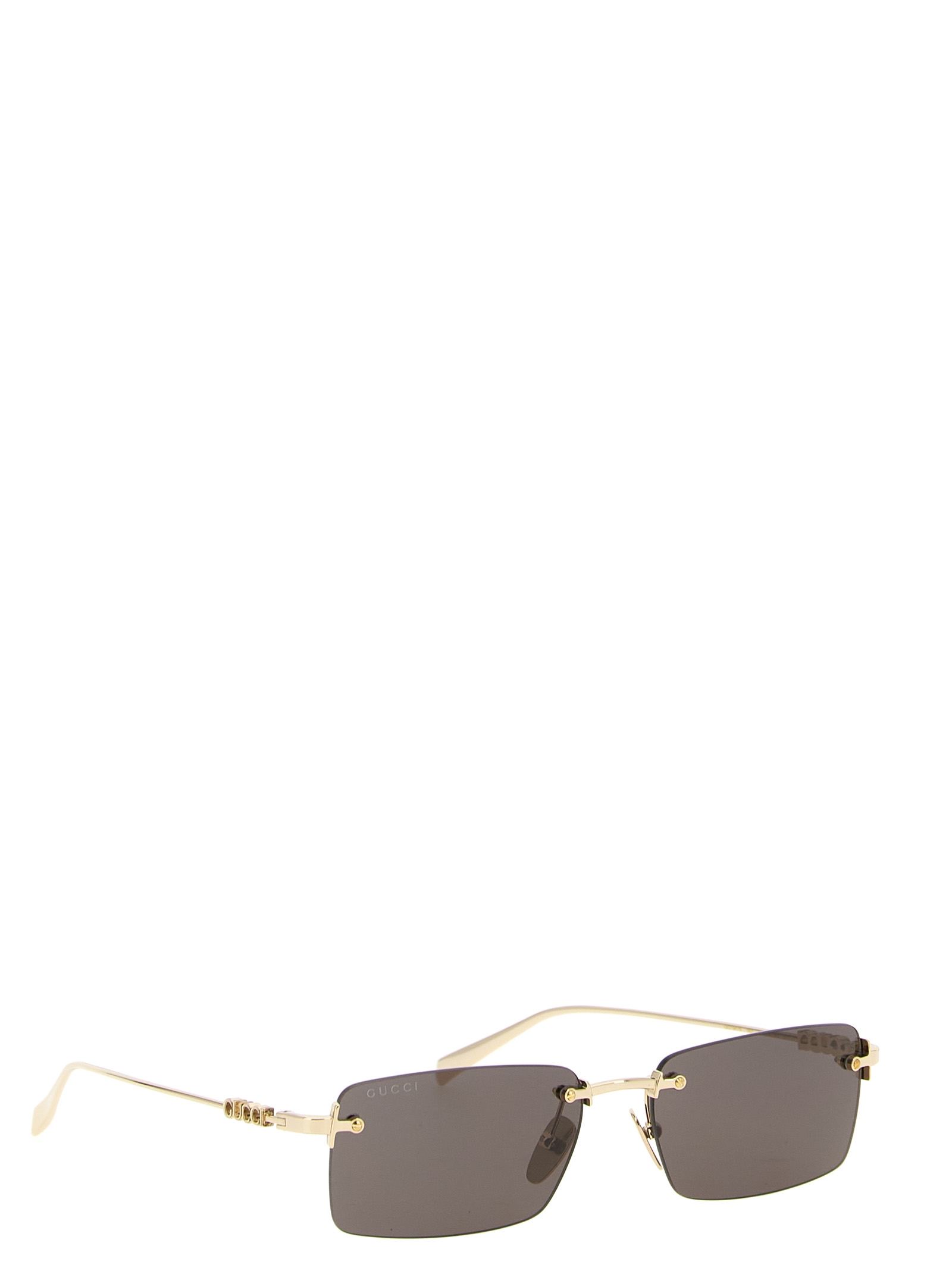 Sunglasses with metal frame, rectangular shape, cut-out logo on temples.