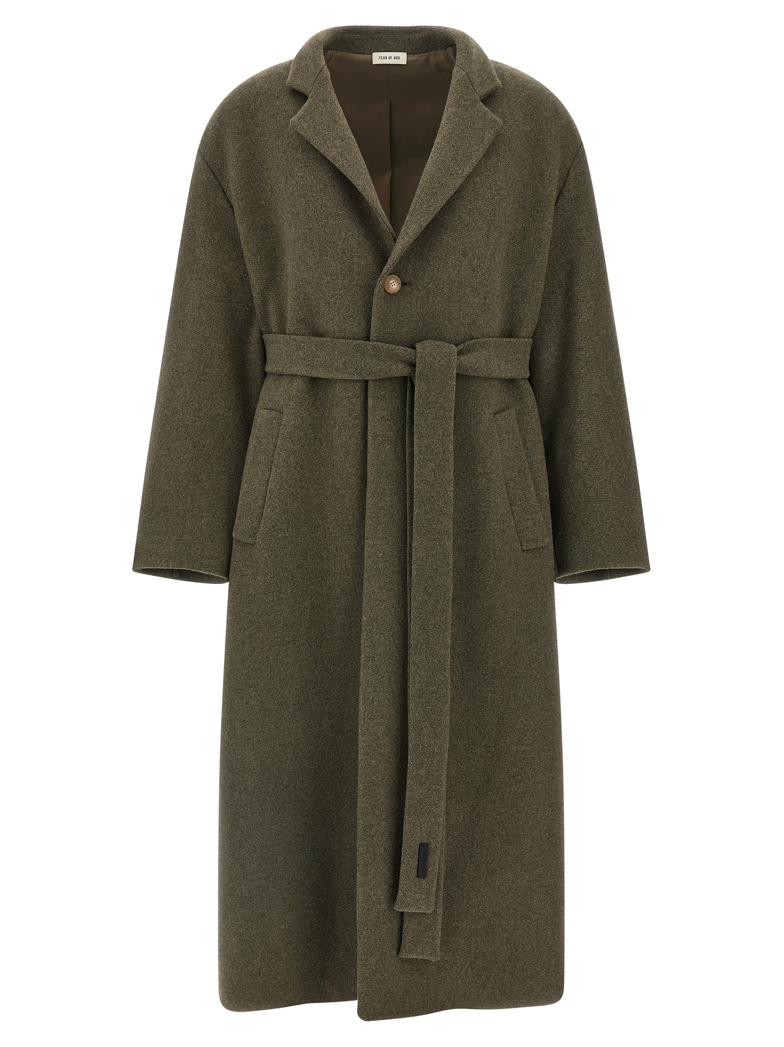‘Relaxed’ virgin wool coat worked in micro checks, lining, single-breasted model with front button closure, pockets, long sleeves with leather logo patch and dropped shoulder, back split, removable belt.