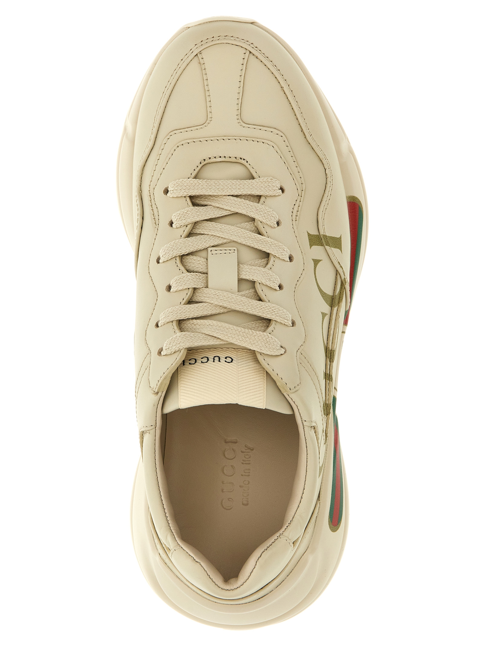 Leather ‘Rhyton’ sneaker with vintage logo print, lace-up closure, rubber sole.