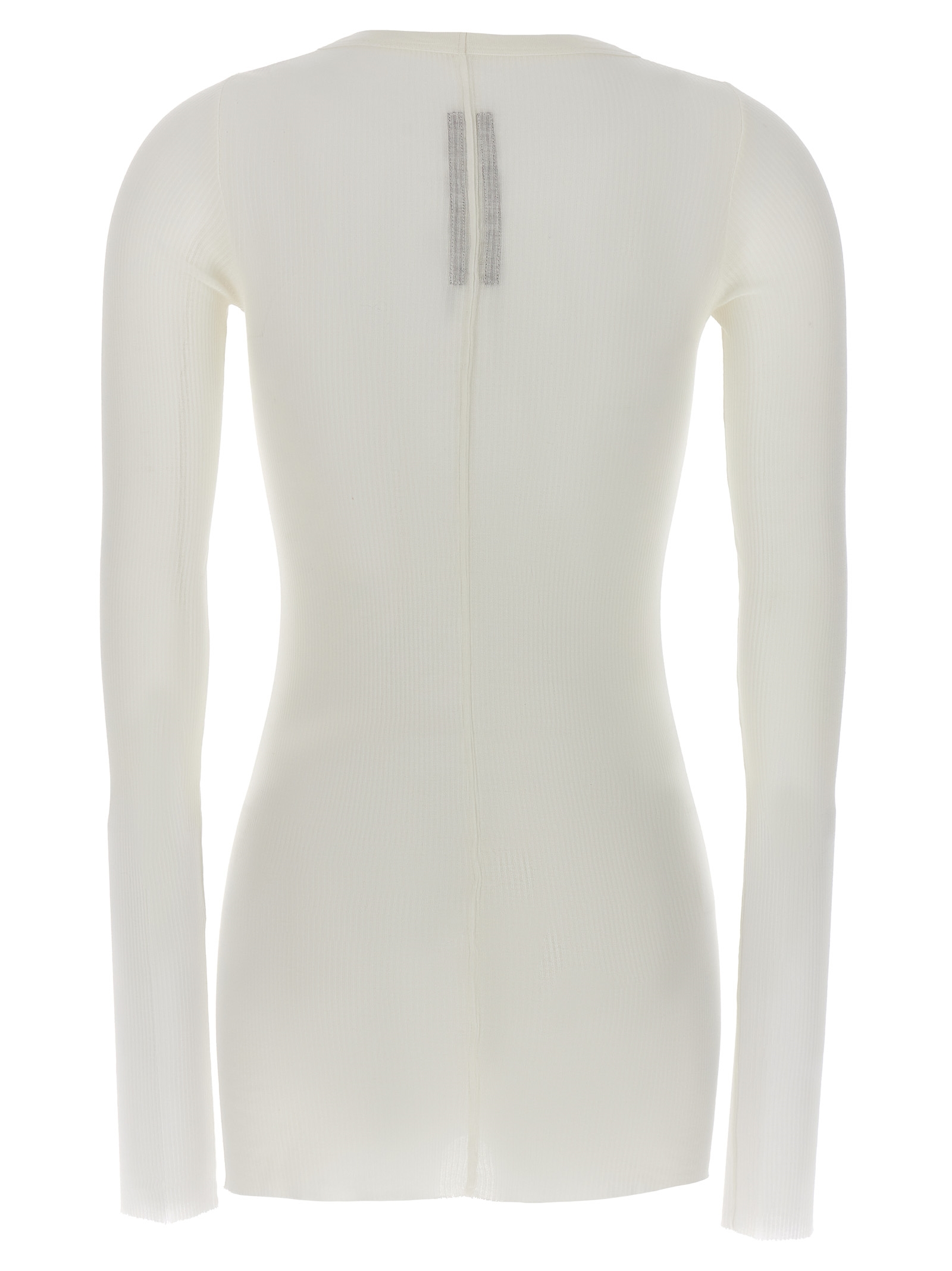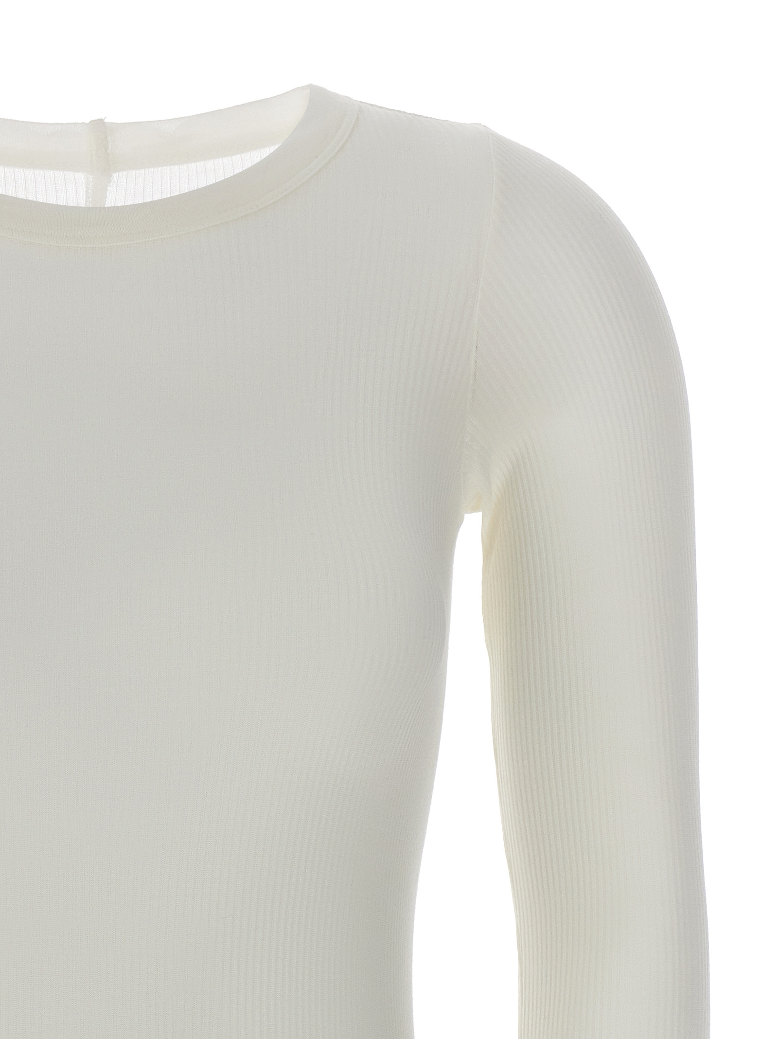 ‘Rib LS T’ ribbed viscose and stretch silk blend t-shirt, raw cut hem, crew neck, long sleeves.