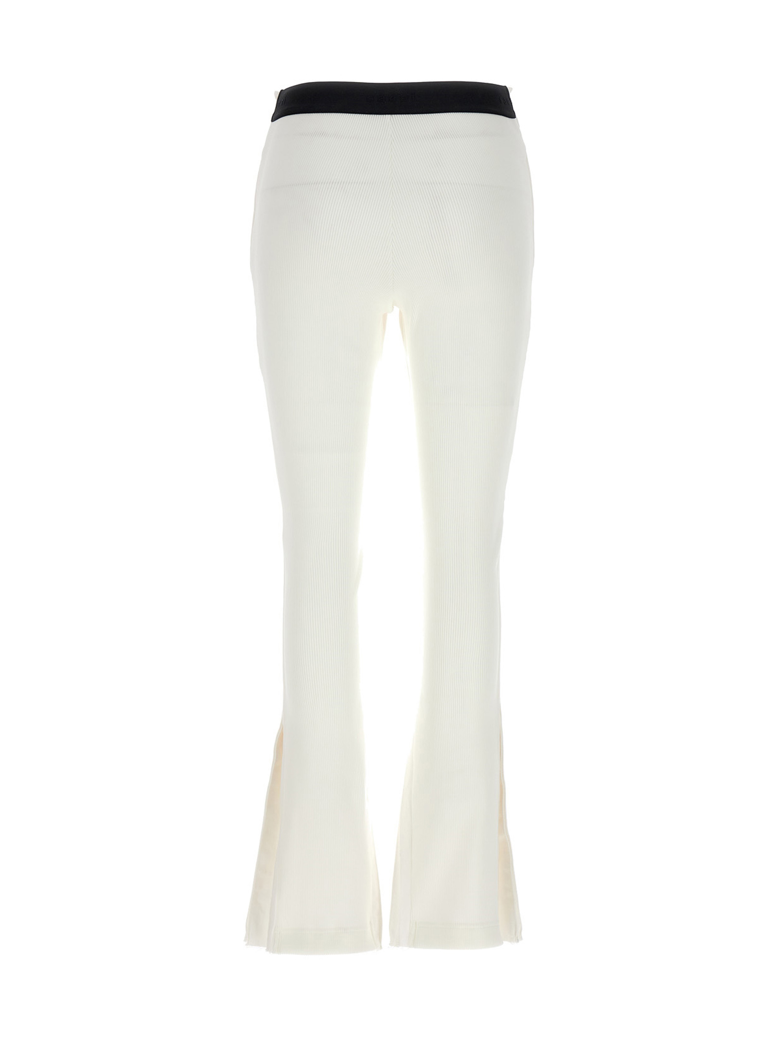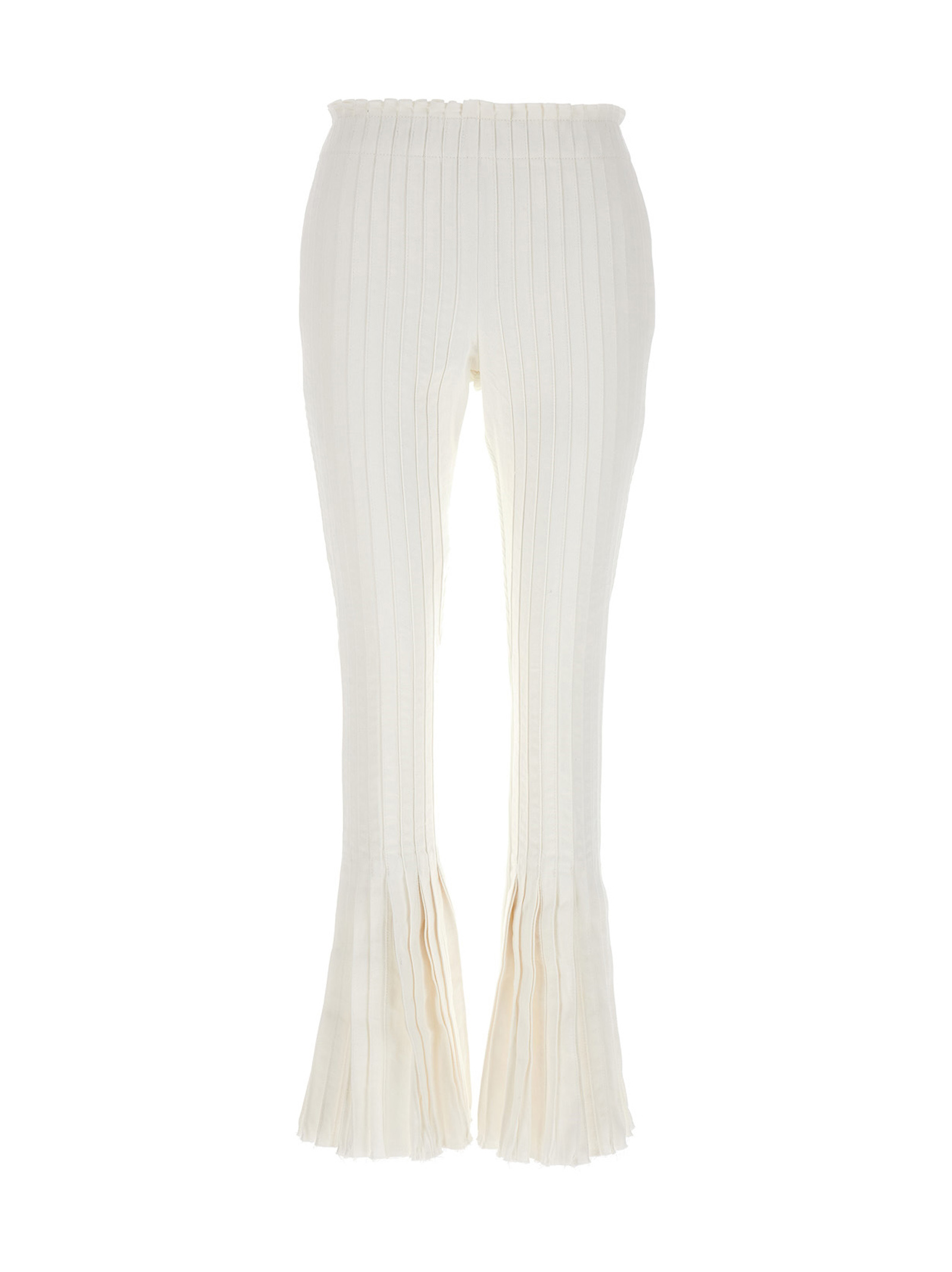 Pleated cotton pants at the front and ribbed pants at the back, an elastic waistband at the back and frayed hem.