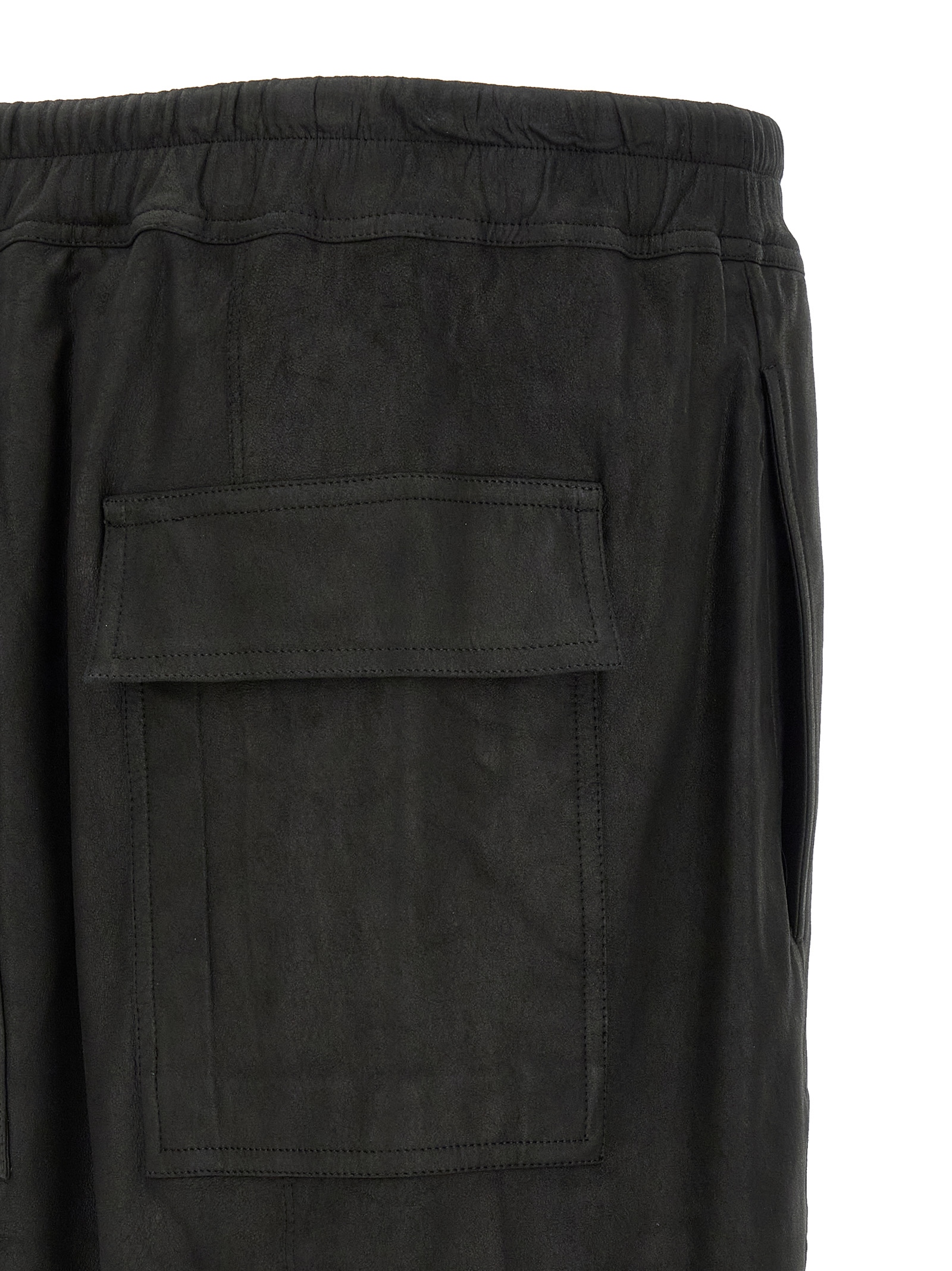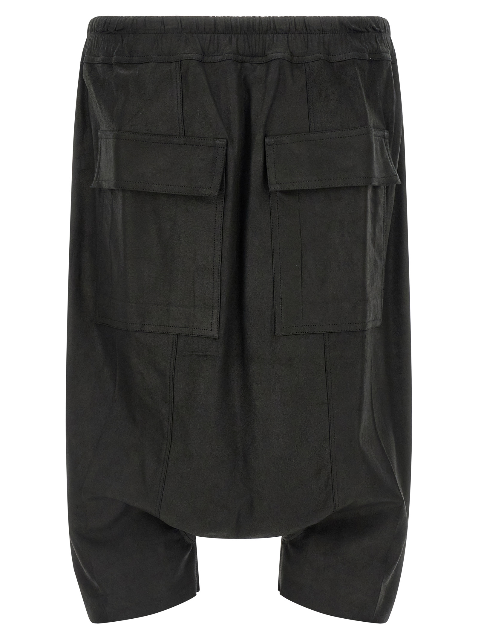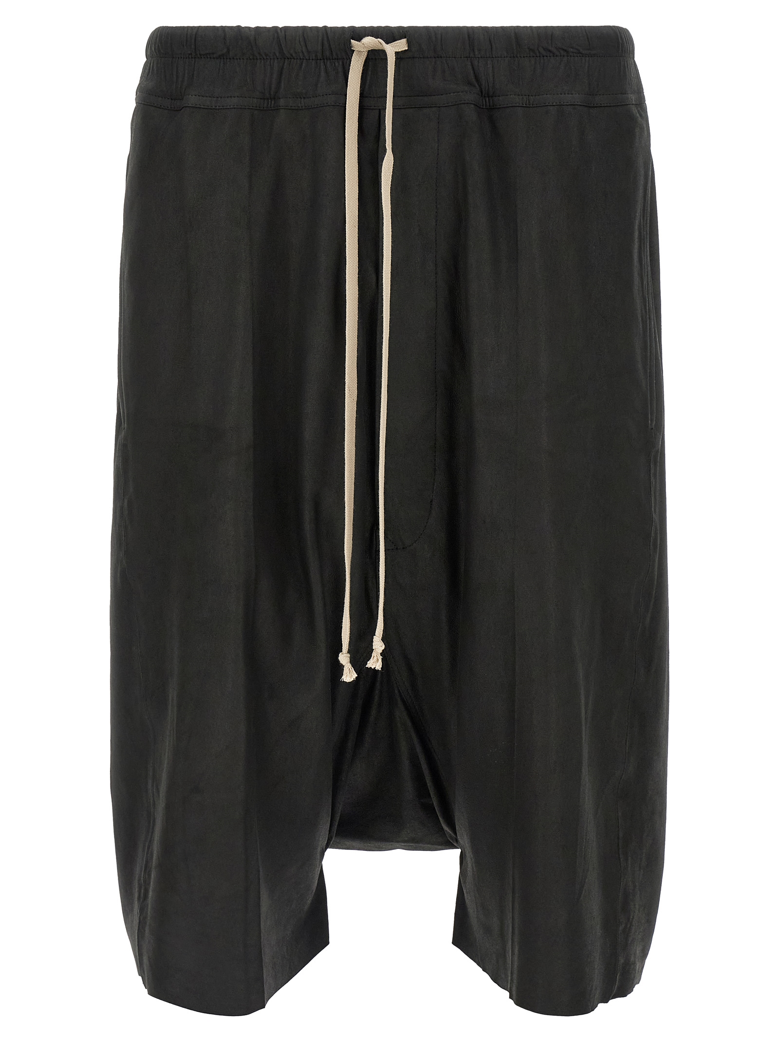 ‘Rick S Pods’ bermuda shorts in light and opaque nappa leather, low crotch, elastic waistband with drawstring, flap with buttons, pockets.