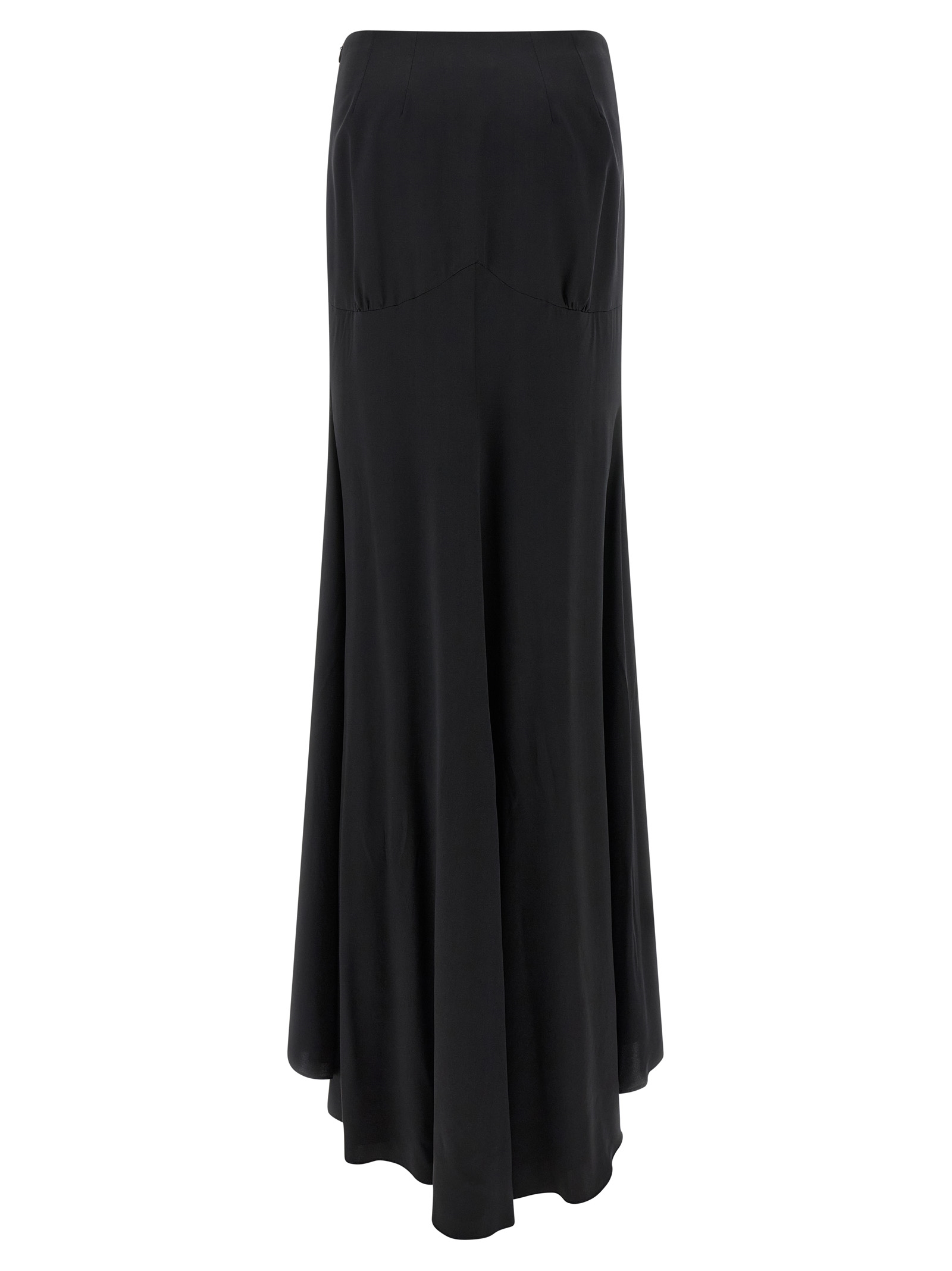 Long ‘Rima’ skirt in double stretch silk satin, mermaid silhouette, side zip closure, curled on the back, asymmetrical hem with train.