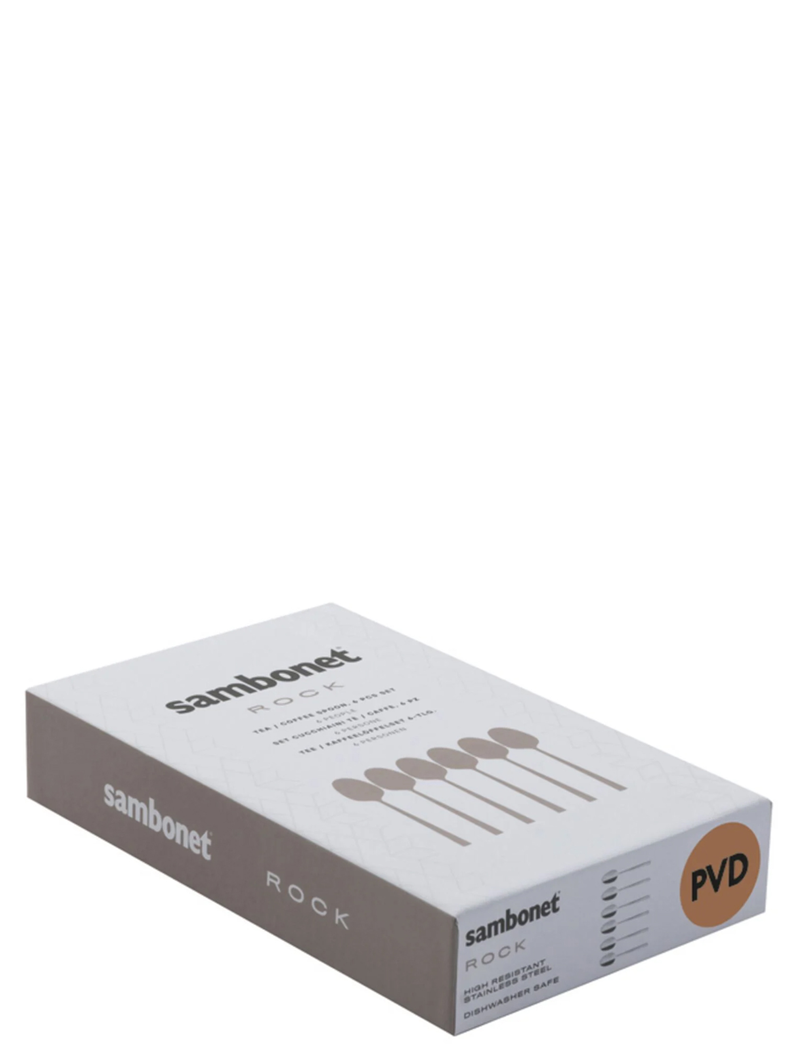 6-teaspoon ‘Rock’ service in 18/10 stainless steel with Antique texture and PVD coloring.