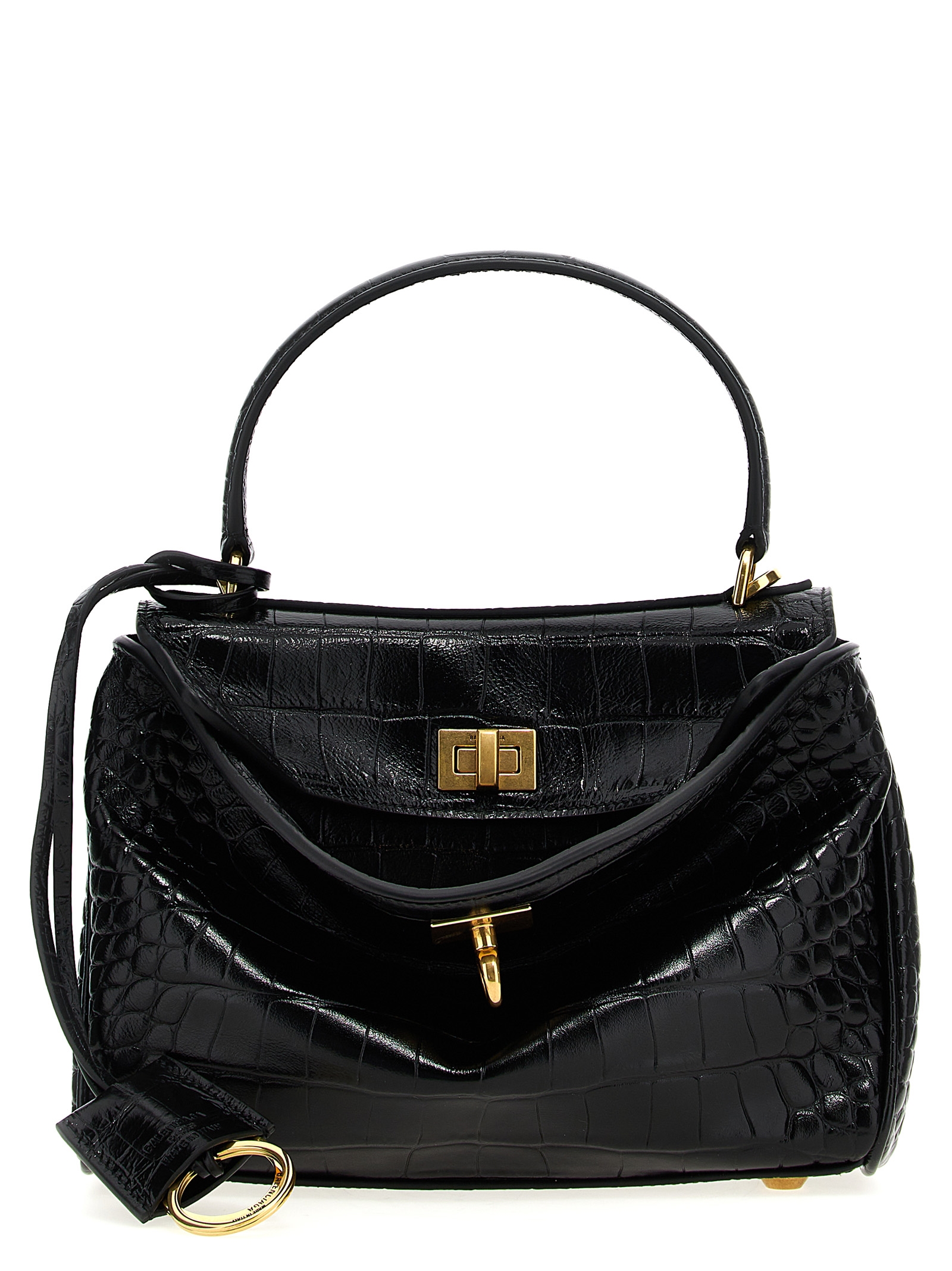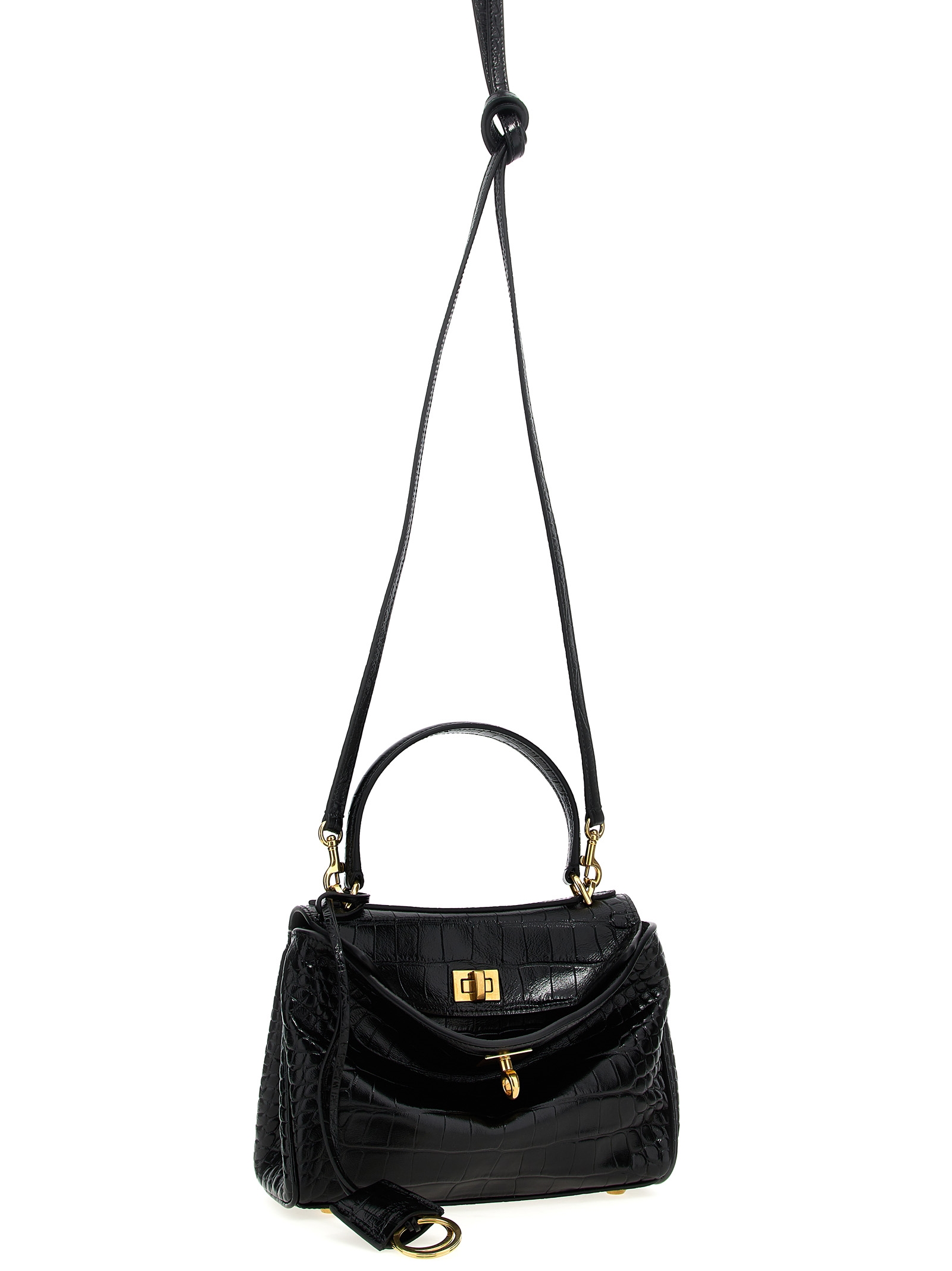 ‘Rodeo’ mini leather handbag with crocodile pattern, fixed handle, metal swivel closure, adjustable and removable shoulder strap, removable key ring.