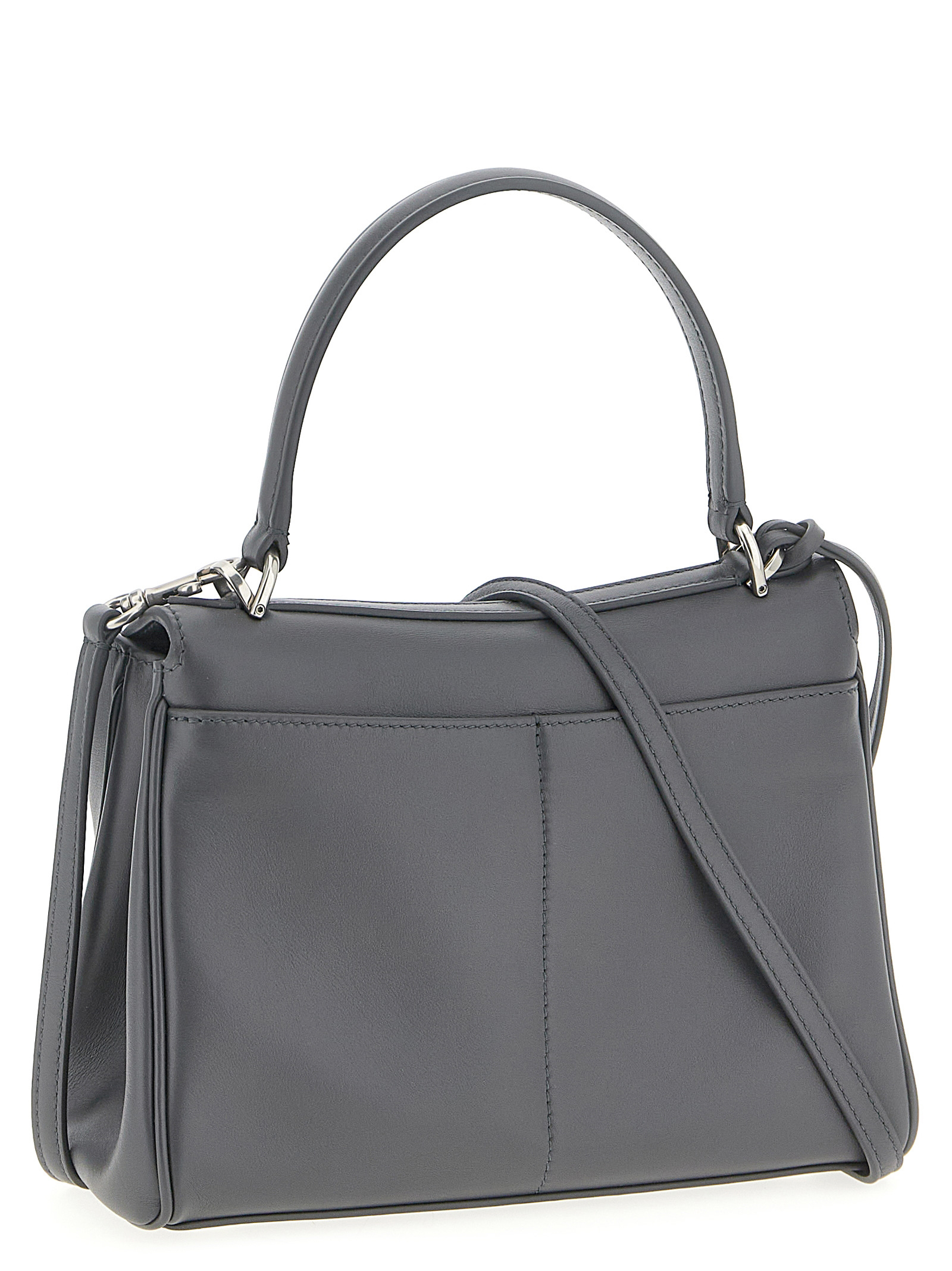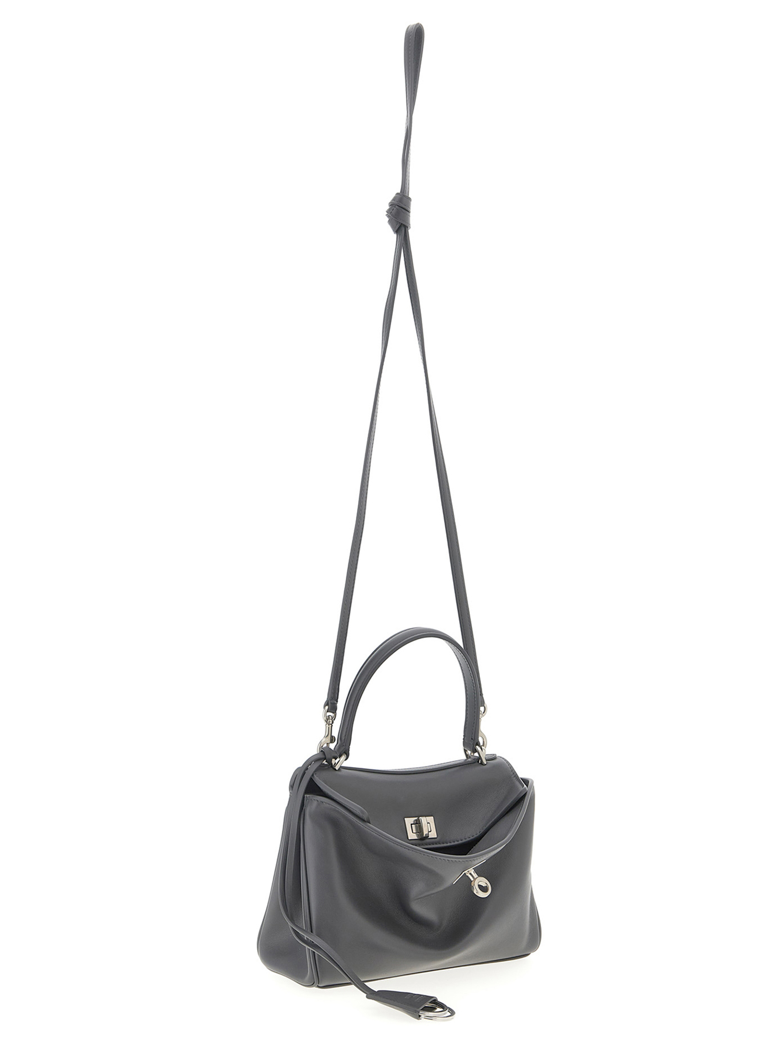 ‘Rodeo’ mini handbag in smooth calfskin leather, metal details with antique finish, fixed handle, removable key ring, flap closure with metal turn lock, adjustable and removable shoulder strap.
