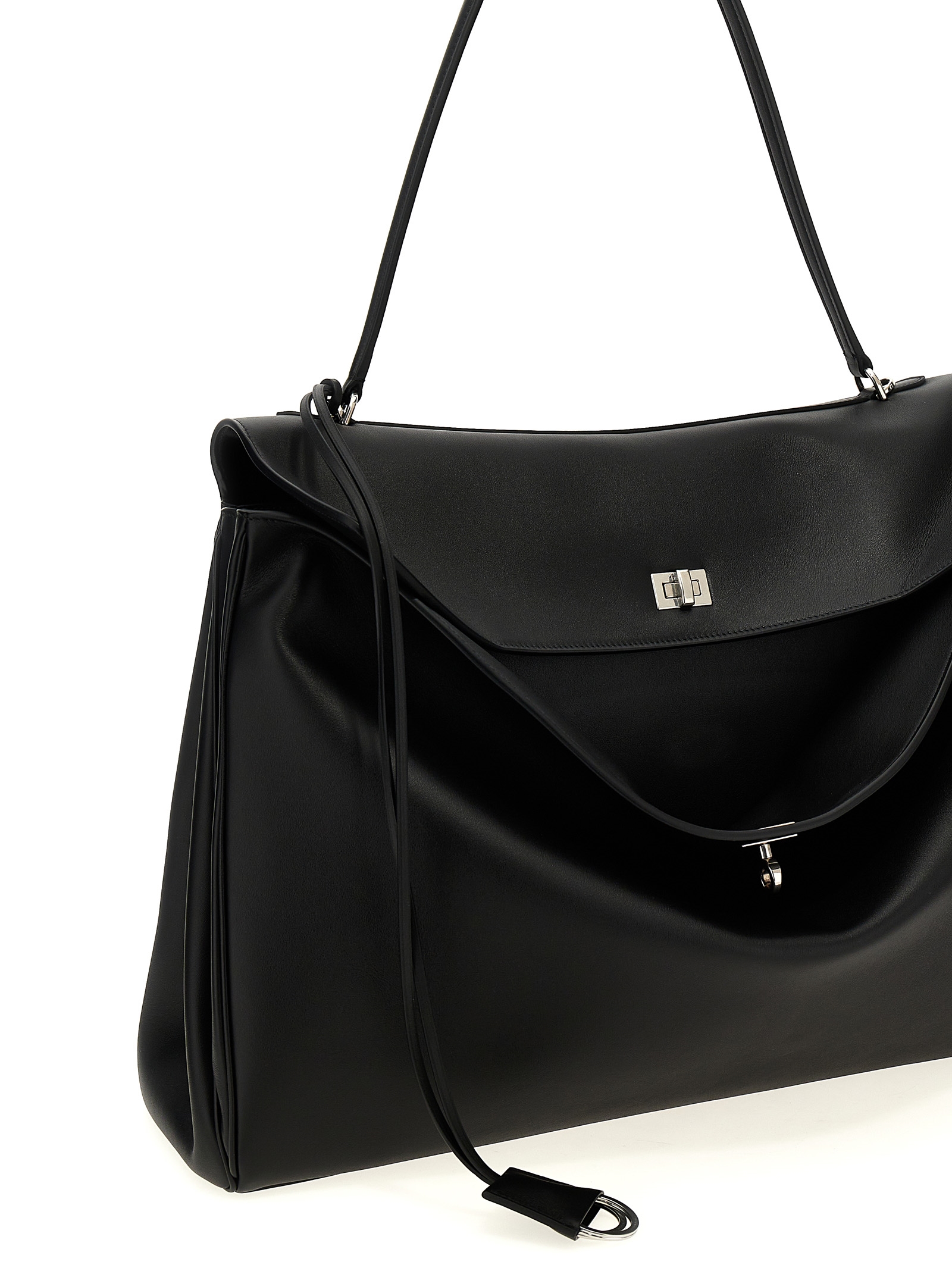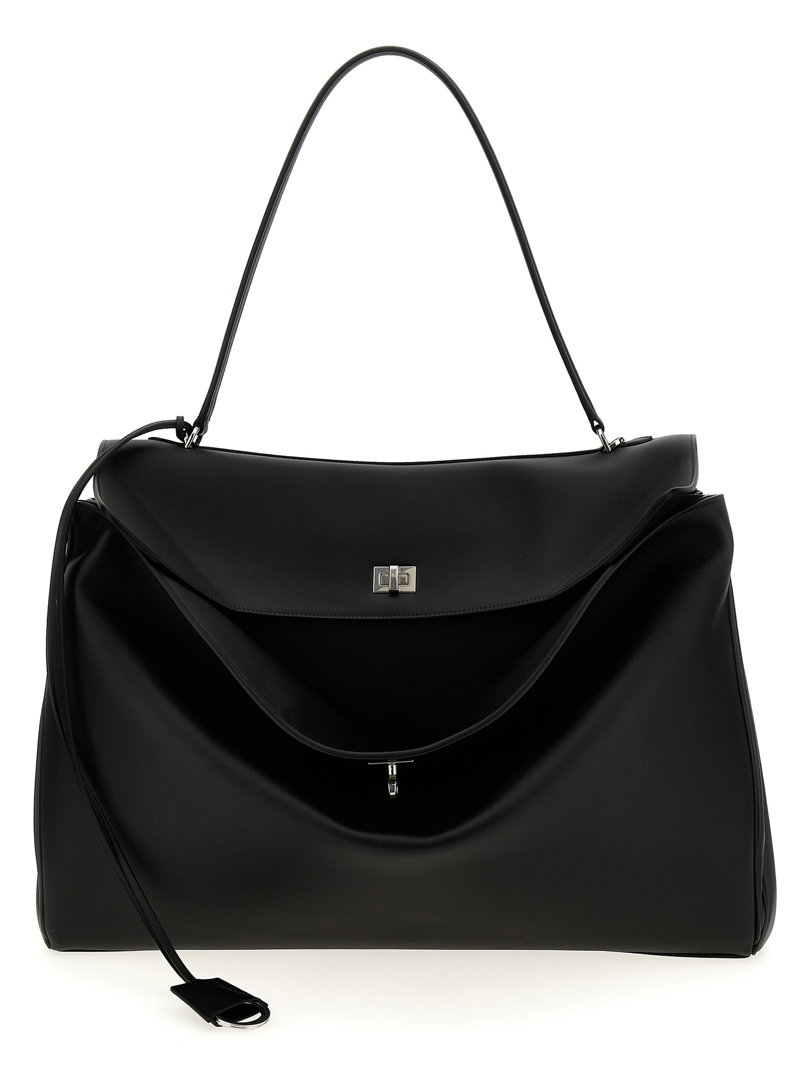 ‘Rodeo XL’ leather shoulder bag with fixed handle, metal closure, removable shoulder strap.