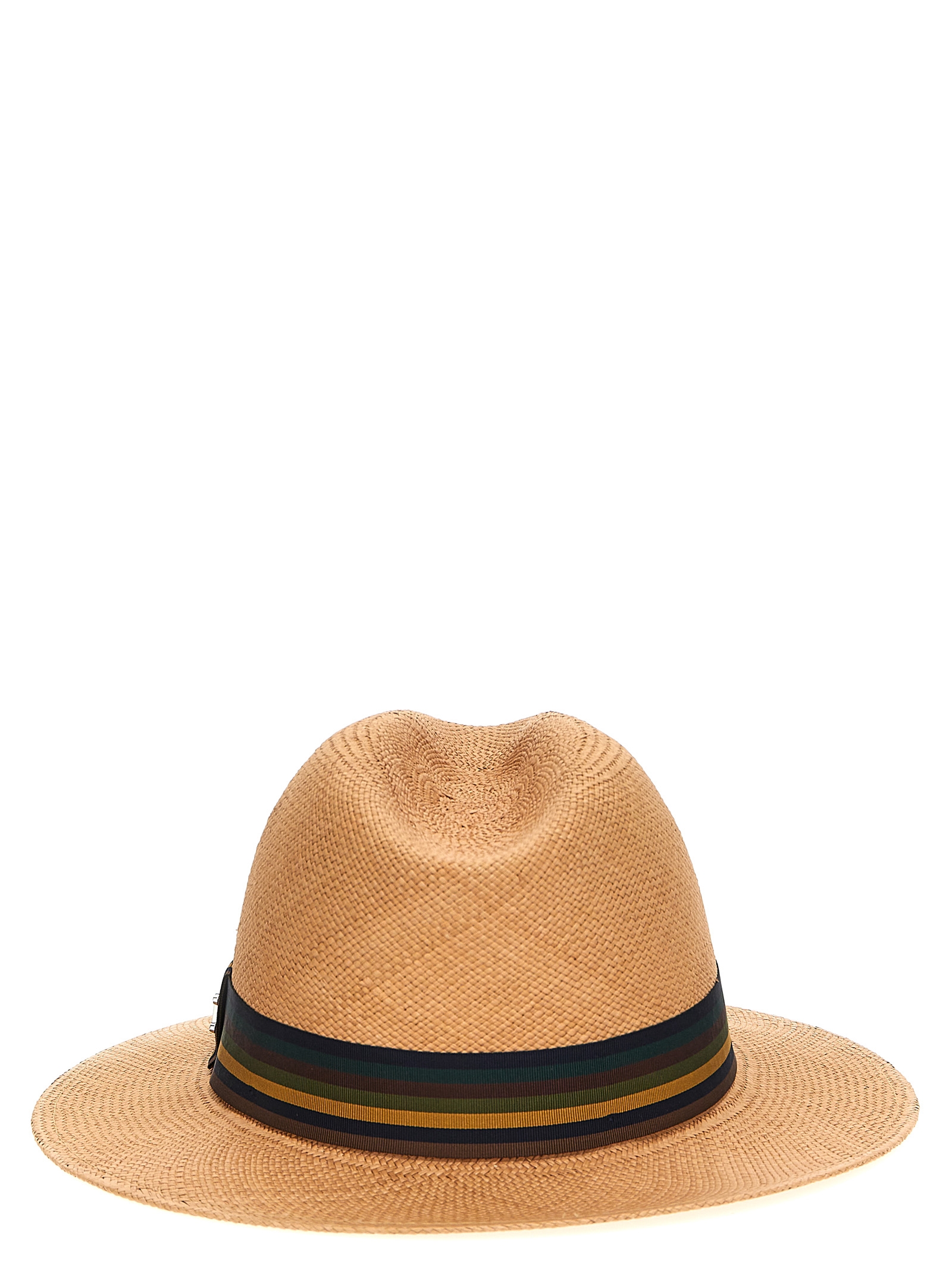 Rodesia’ straw hat, wide-brimmed panama style with contrast ribbon and metal M Monogram detail.