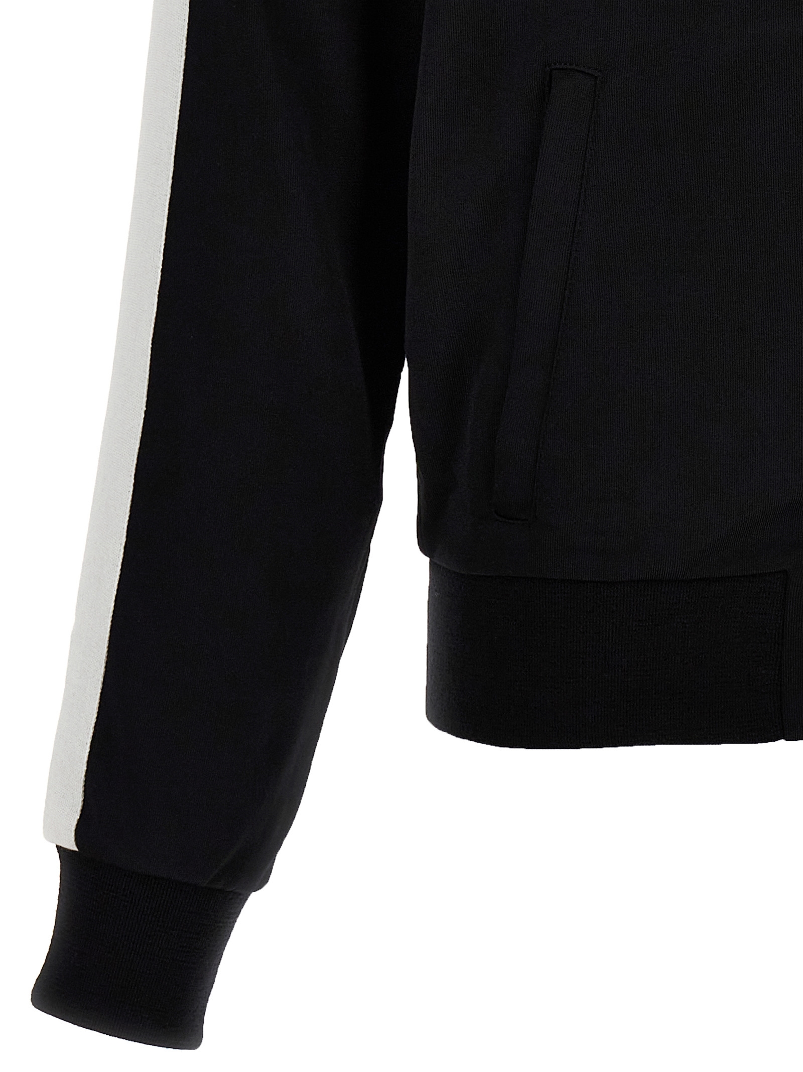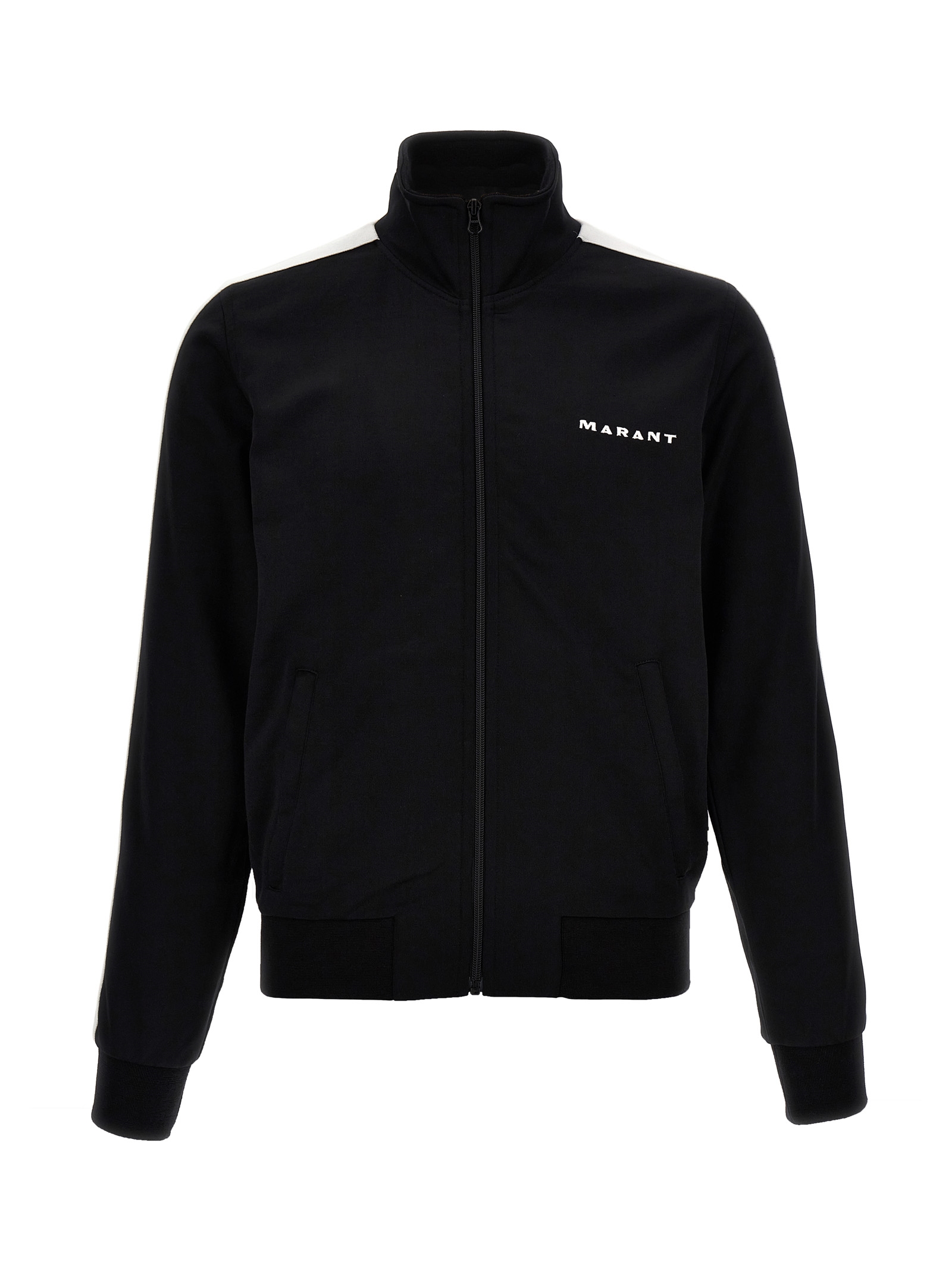 ‘Ronny’ sweatshirt in cotton-blend technical fabric with front logo embroidery, contrast bands on the sleeves, zip closure, pockets, long cuffed sleeves.