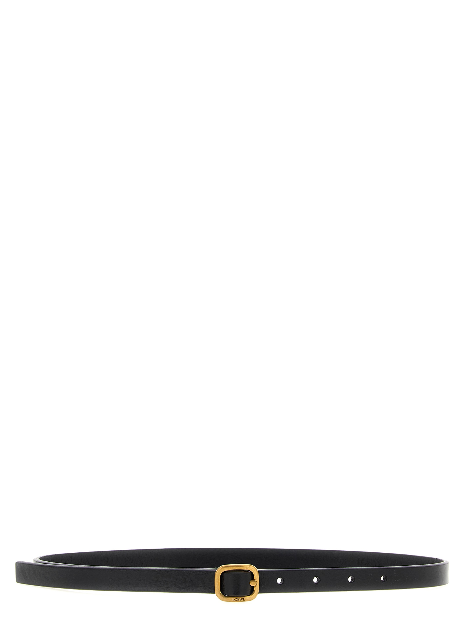 ‘Rounded’ leather belt, adjustable with round metal buckle.