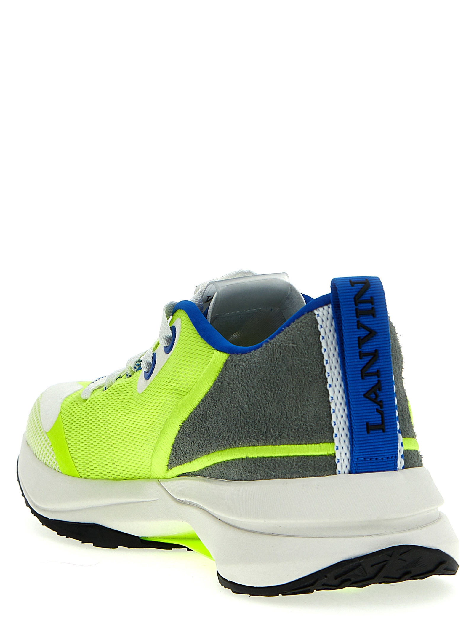 ‘Runner’ stretch knit sneakers with laces and rubber sole.