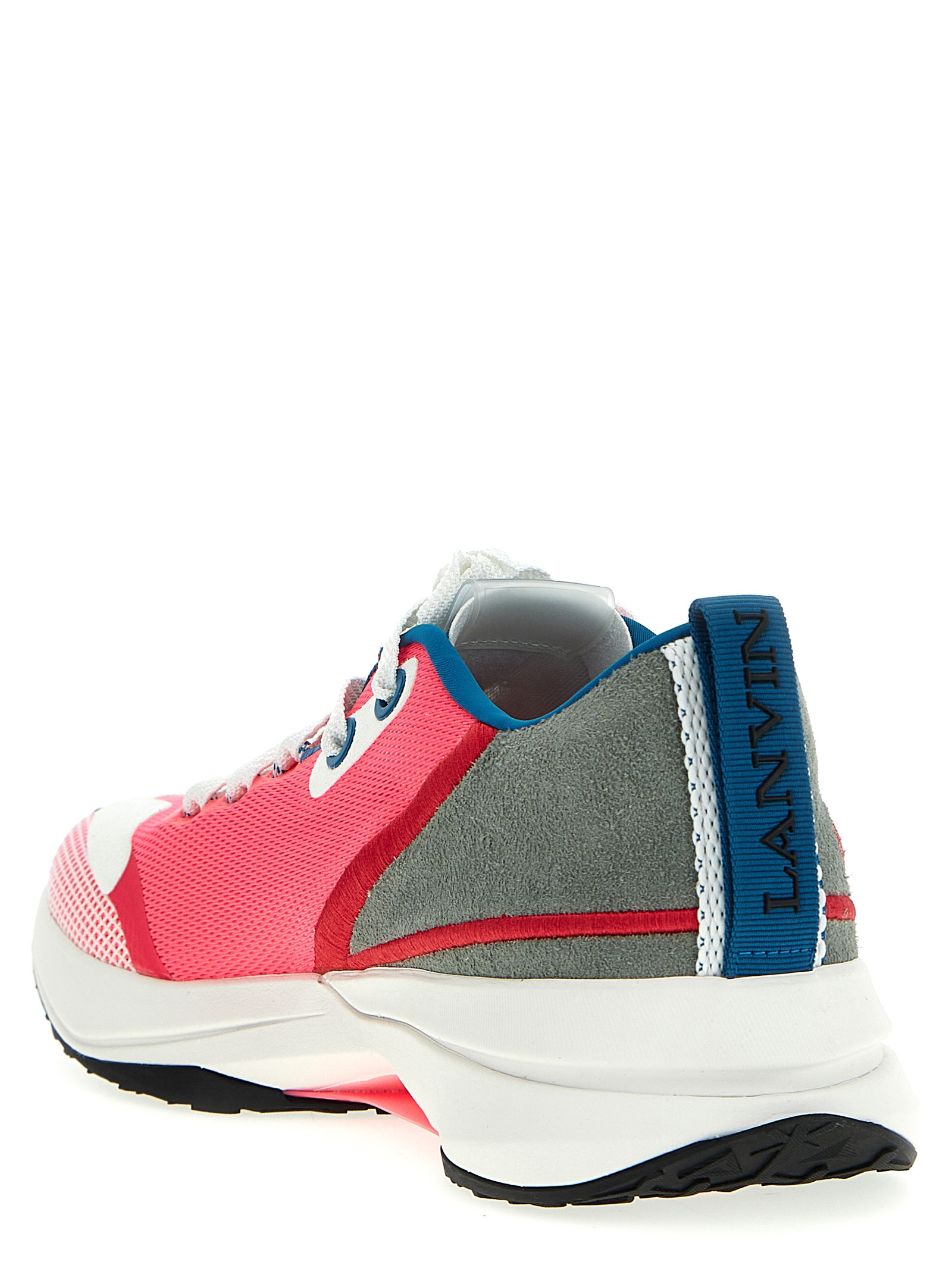 ‘Runner’ stretch knit sneakers with laces and rubber sole.