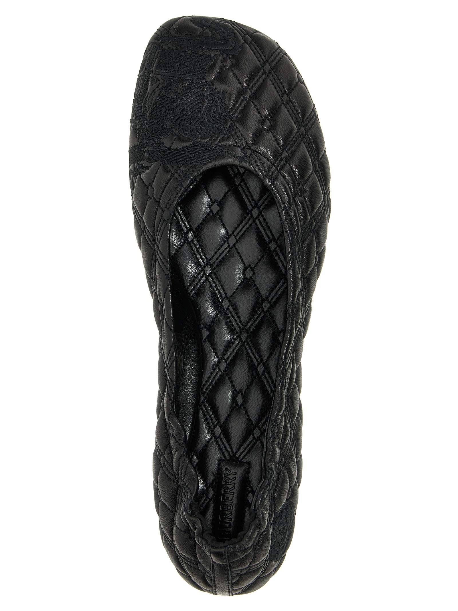 ‘Sadler’ quilted leather ballet flats with logo embroidery, rubber sole.