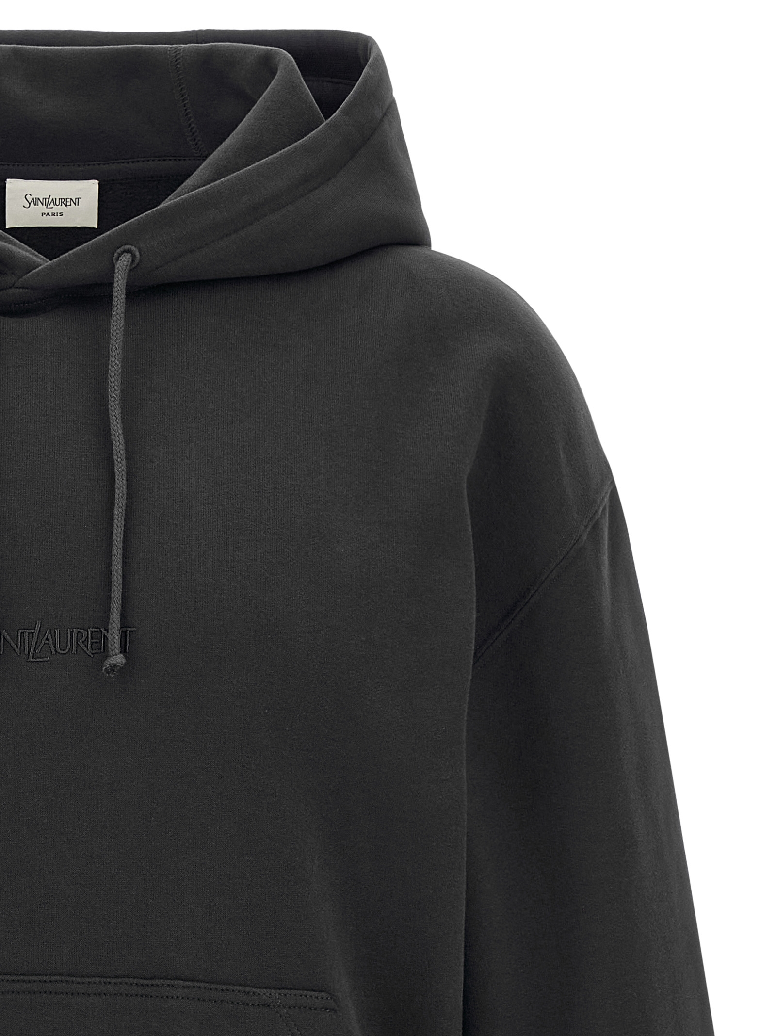 Fleece cotton hoodie with tonal ‘Saint Laurent’ embroidery on the front, kangaroo pocket, long cuffed sleeves and dropped shoulders.