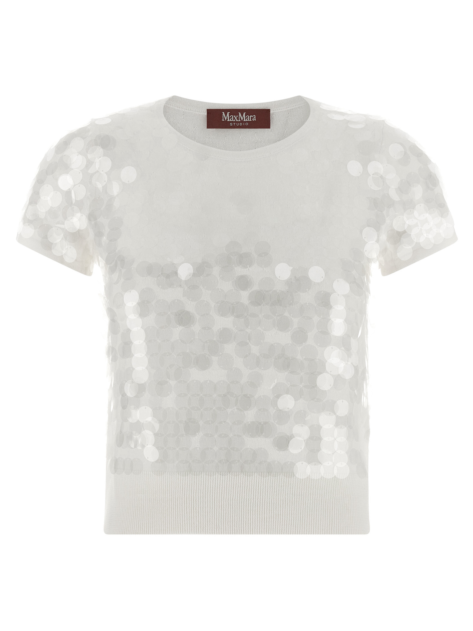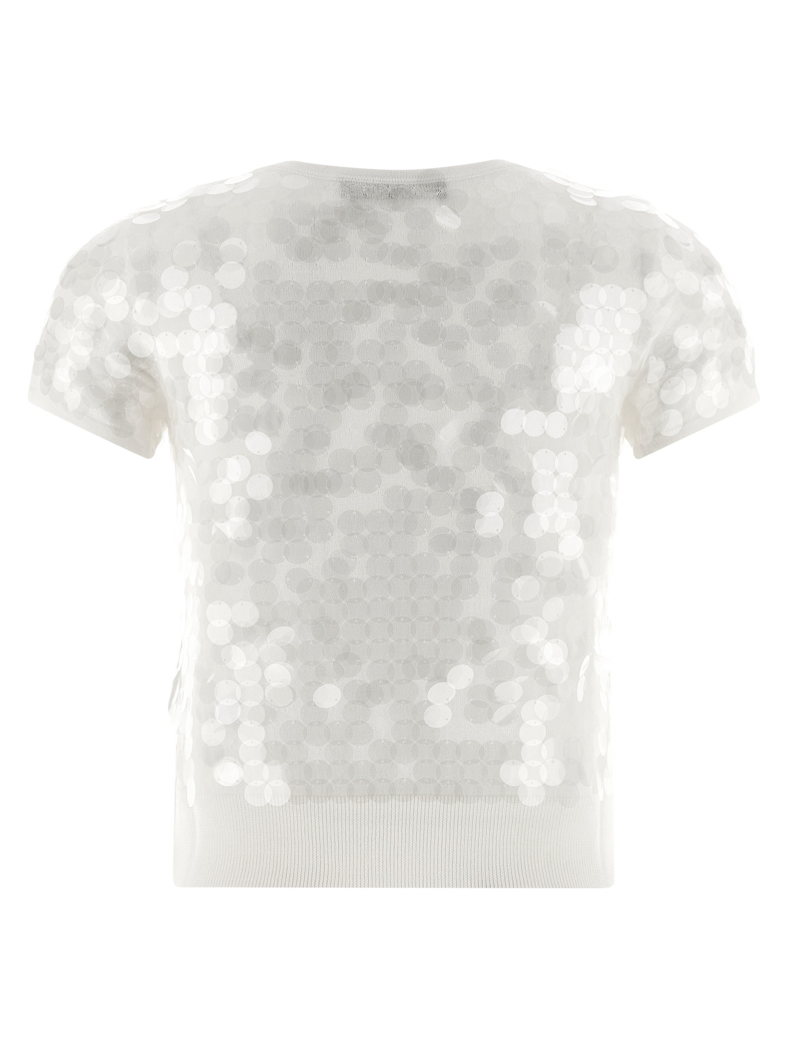 ‘Saio’ wool sweater, crew neck, all-over macro sequins, short sleeves.