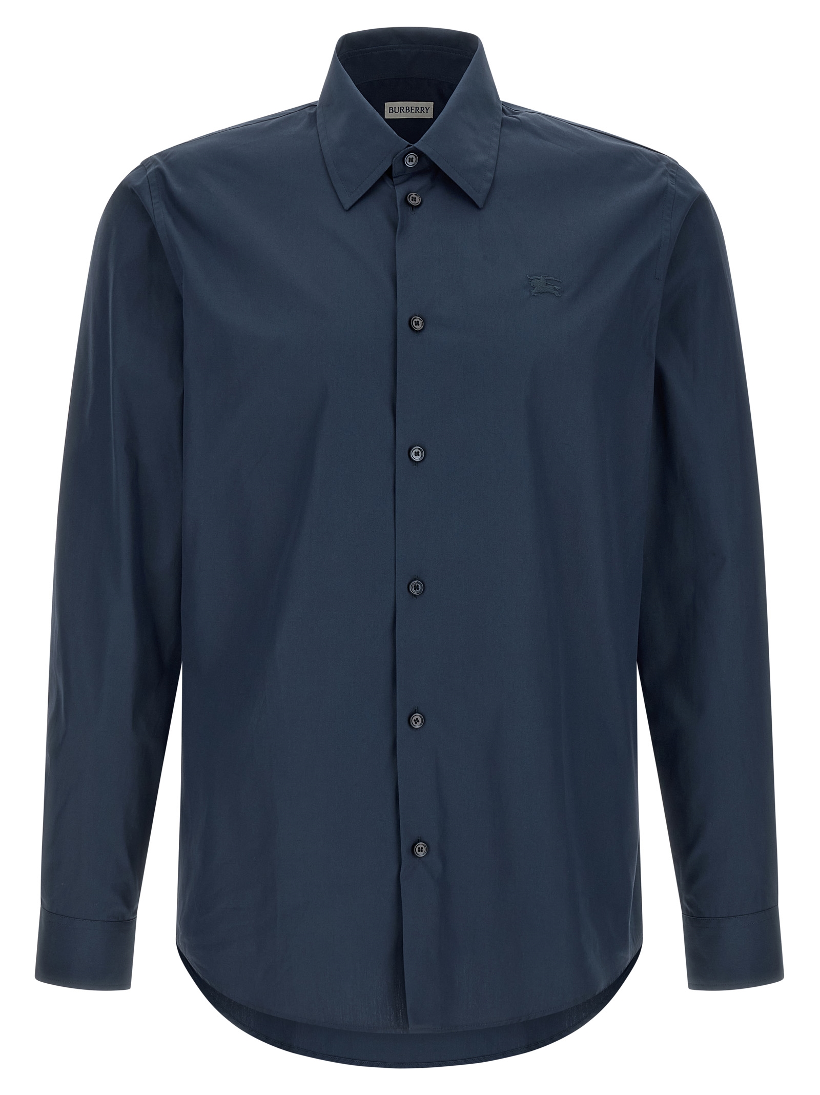 ‘Sam’ cotton poplin shirt with Burberry Check inner details, tone-on-tone ‘Equestrian Knight Design’ logo embroidery and front button closure, long cuffed sleeves and rounded hem.