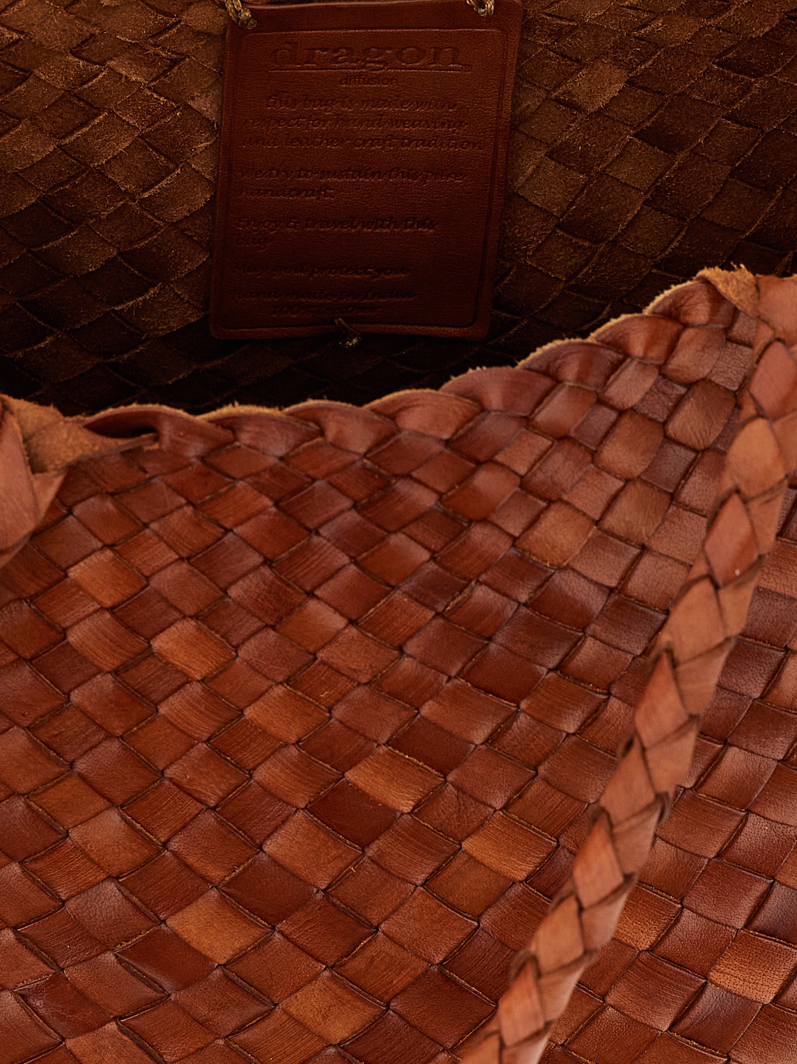 ‘Santa Croce’ large shoulder bag in hand-woven buffalo leather characterized by irregular strips of leather that gently taper towards the hem, unlined, double fixed handle.