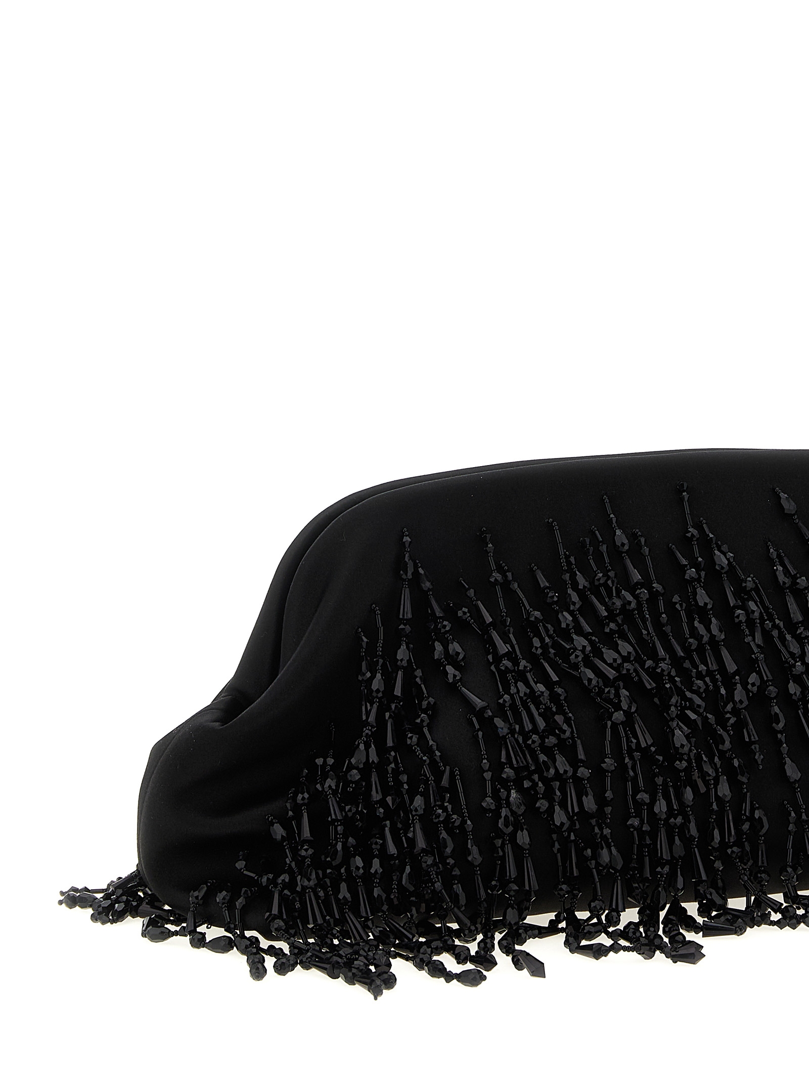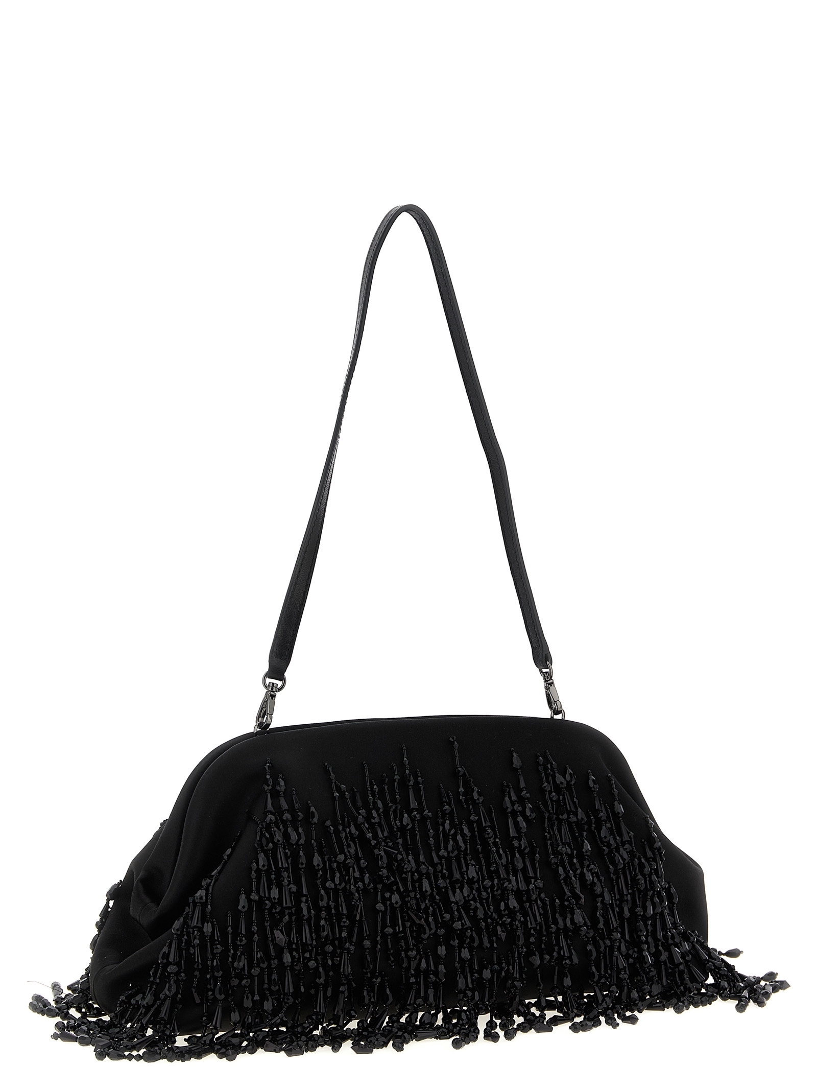 Satin satin clutch with beads with pendant embroidery beads, magnetic button closure, removable chain shoulder strap.