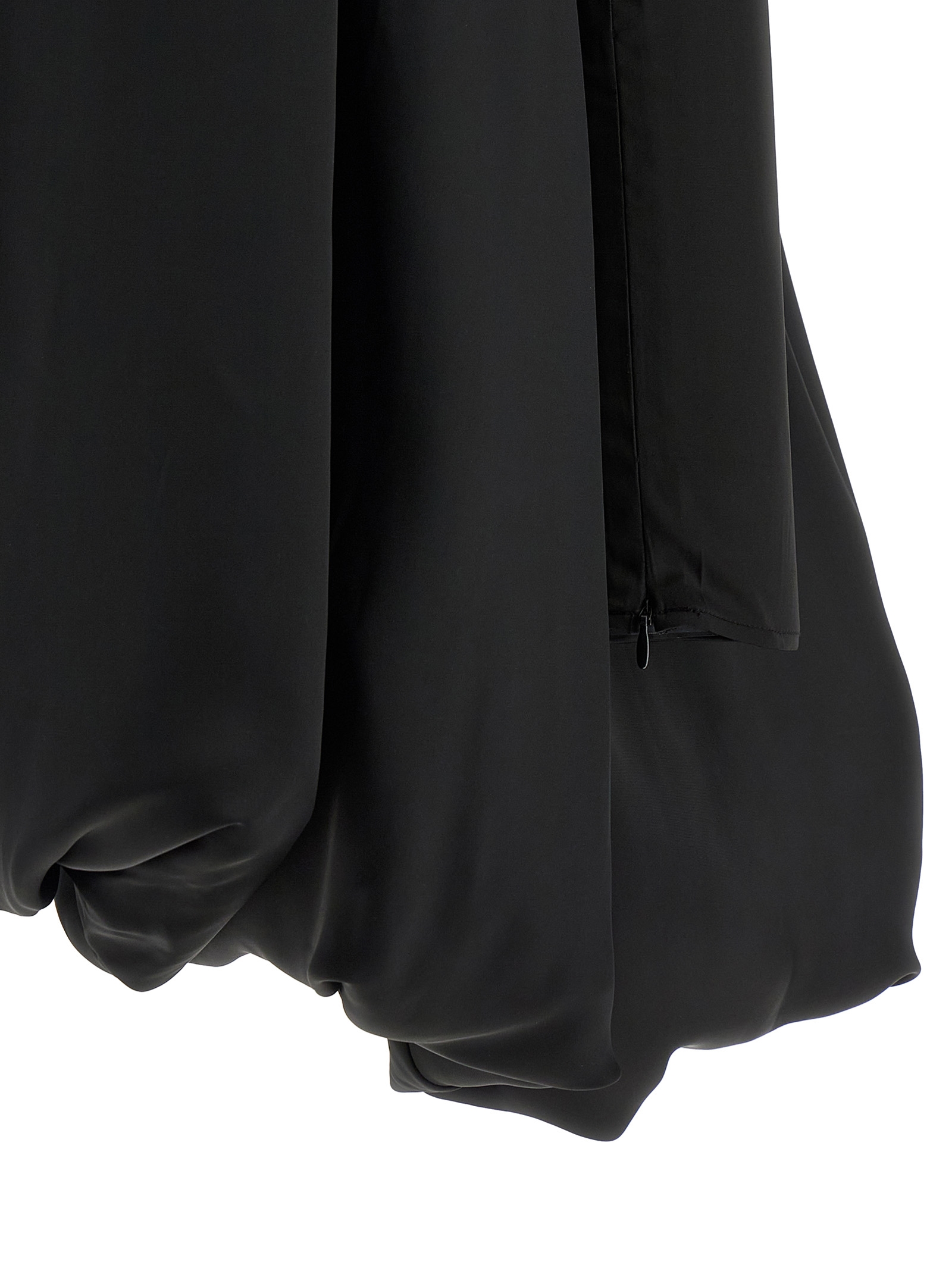 Satin Le Bubble’ satin mini dress with balloon silhouette, wide skirt, thin straps, back zip closure, removable long sleeves with zip on the cuffs.