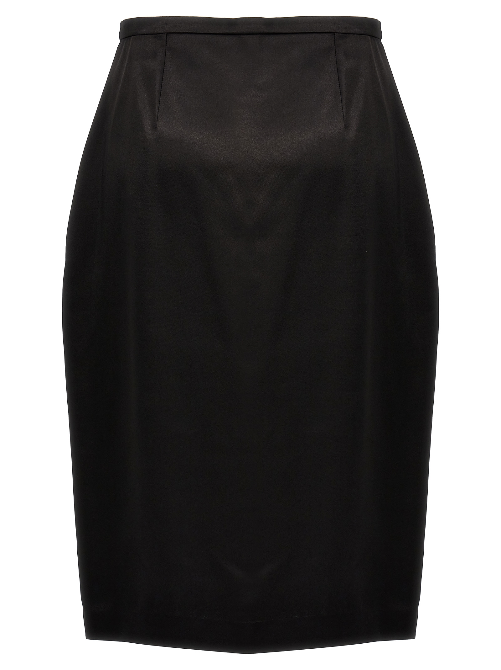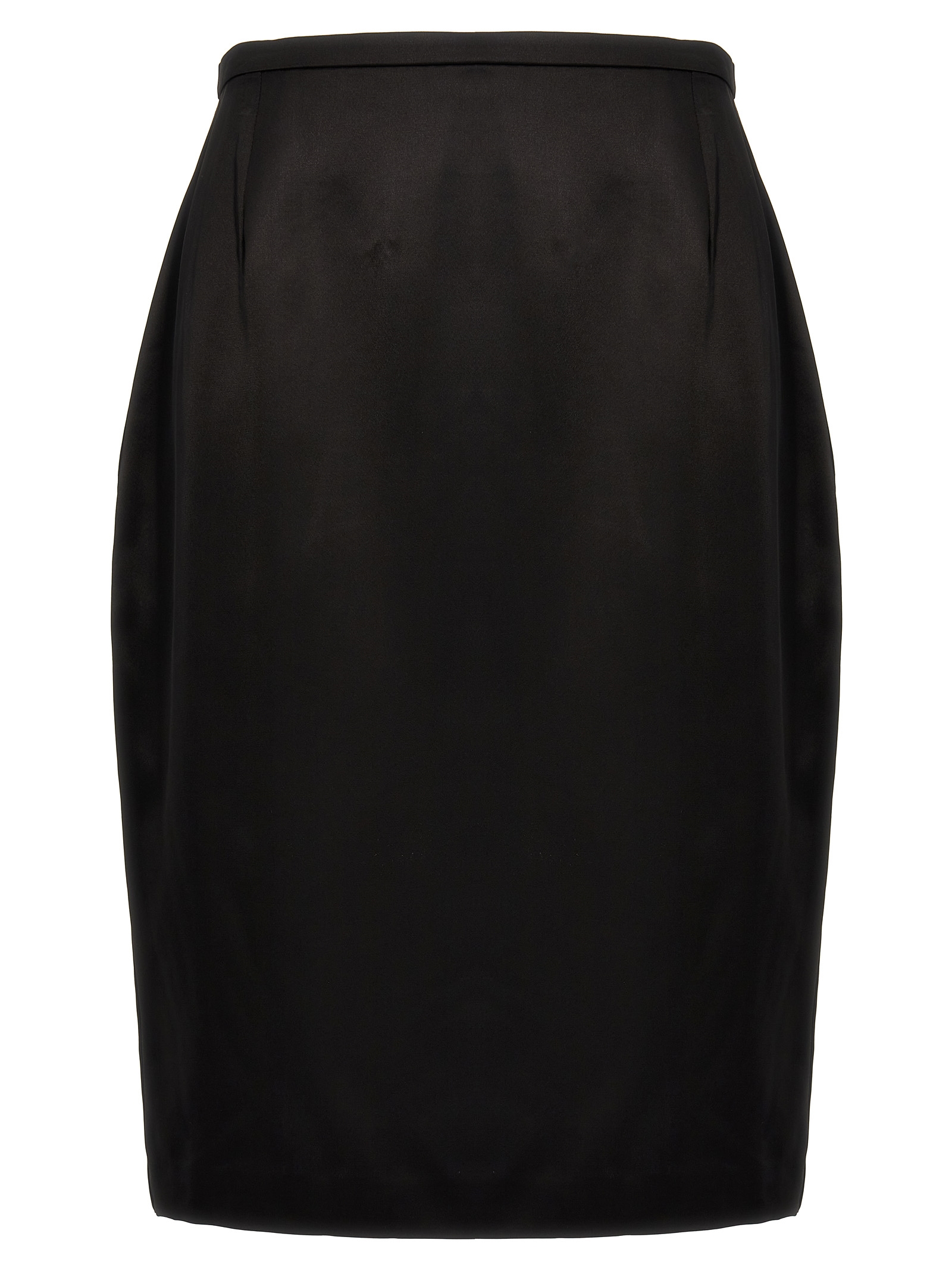 Viscose satin pencil skirt with mid waist, side zip closure.