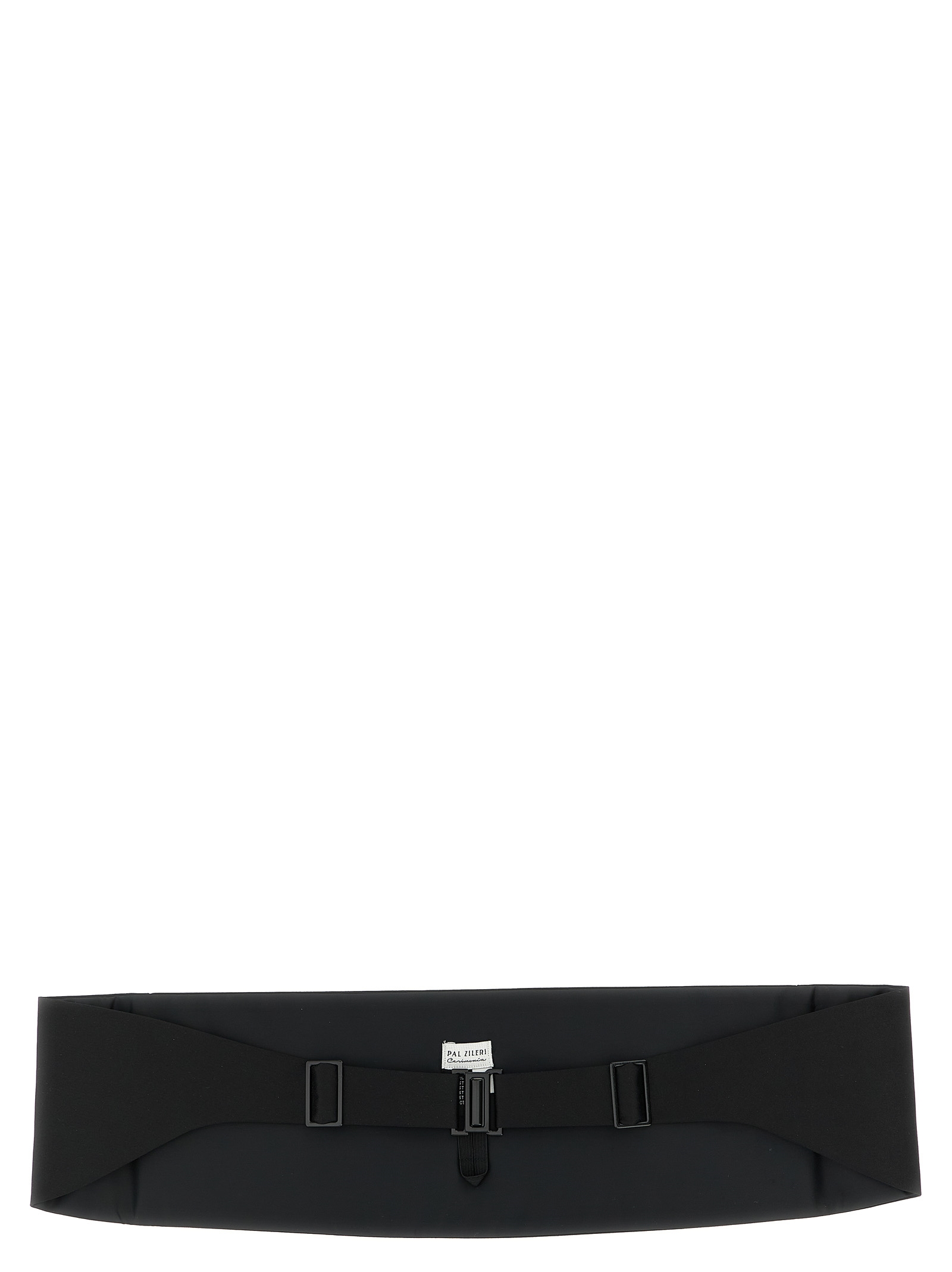 Tuxedo band in pleated satin, adjustable, hook closure.