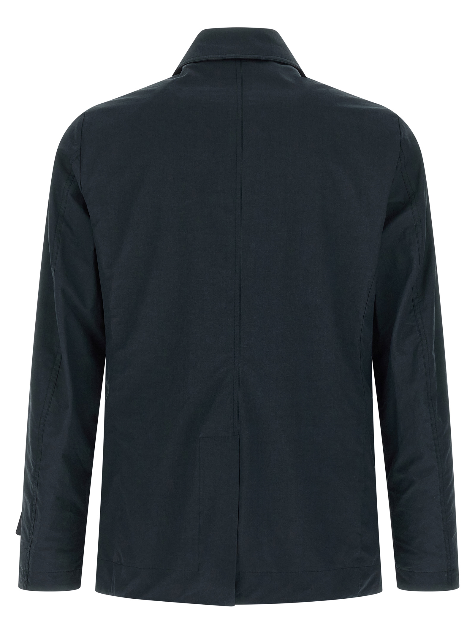 ‘Scap-Arqua-Wfc’ short trench coat in cotton and linen blend, double-breasted model with front button closure, shirt collar, pockets, long cuffed sleeves, back split, unlined.