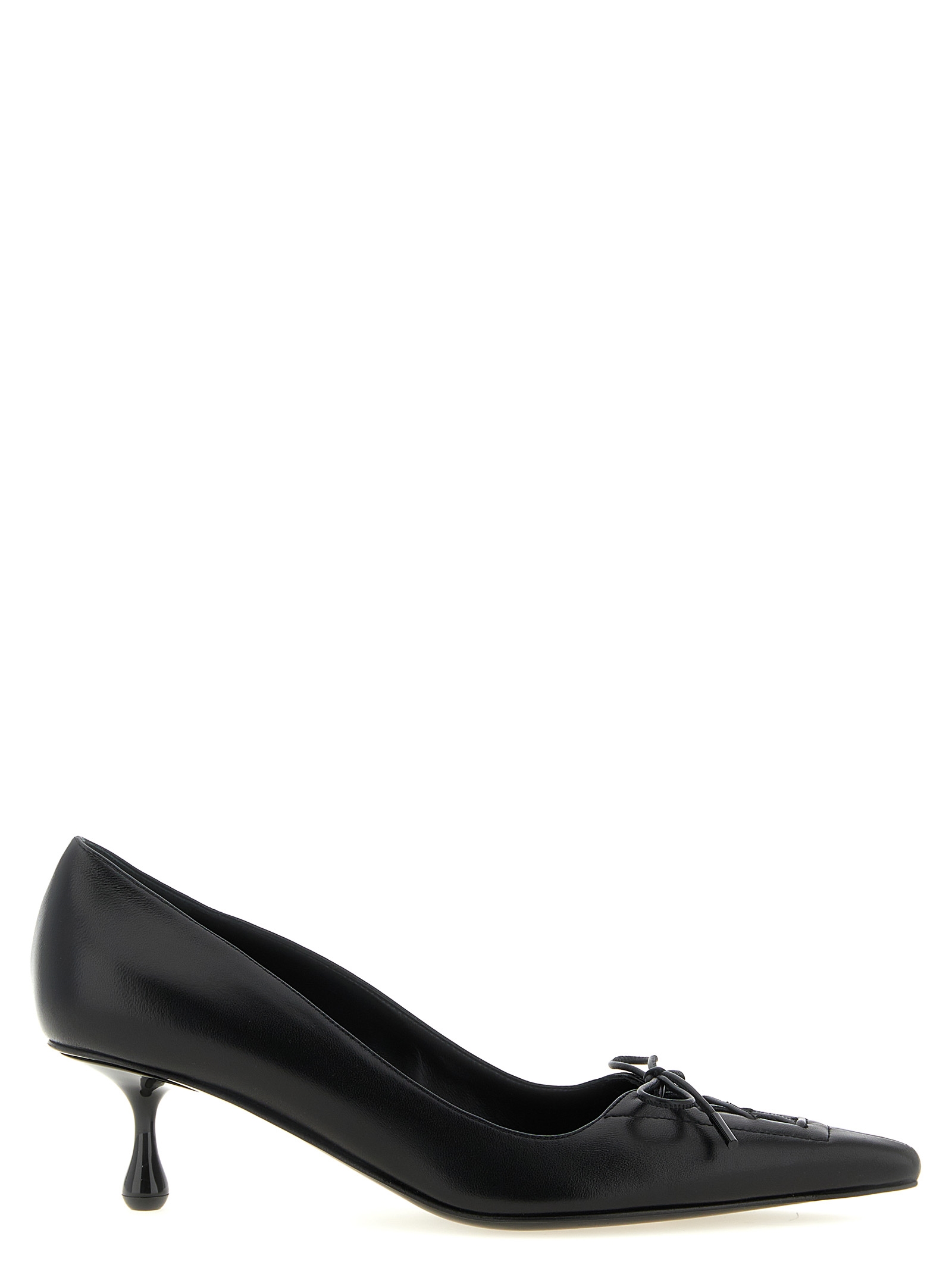 ‘Scarlett’ nappa pointed pumps with corset upper with hand-strung leather lace and fixed with an invisible stitch, teardrop heel, leather sole.