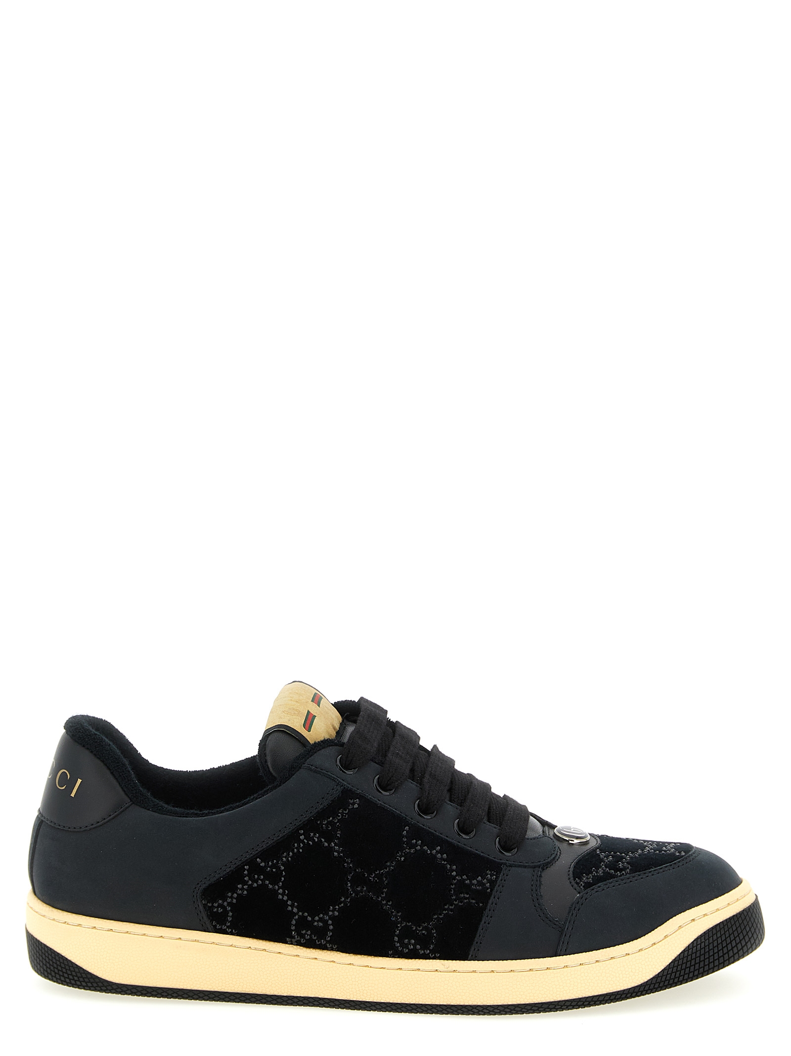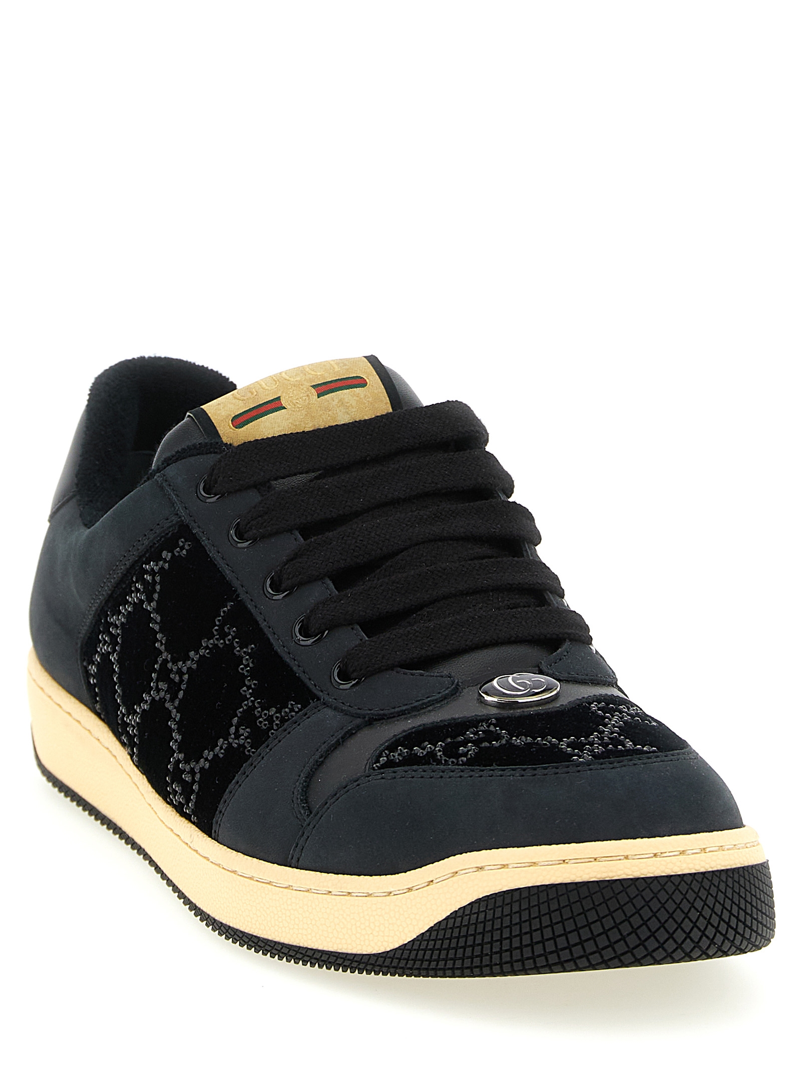 ‘Screener’ velvet sneakers with GG crystal and tone-on-tone leather appliqué, enamelled oval detail with Double G metal on the front, back embossed logo, lace-up closure, rubber sole.