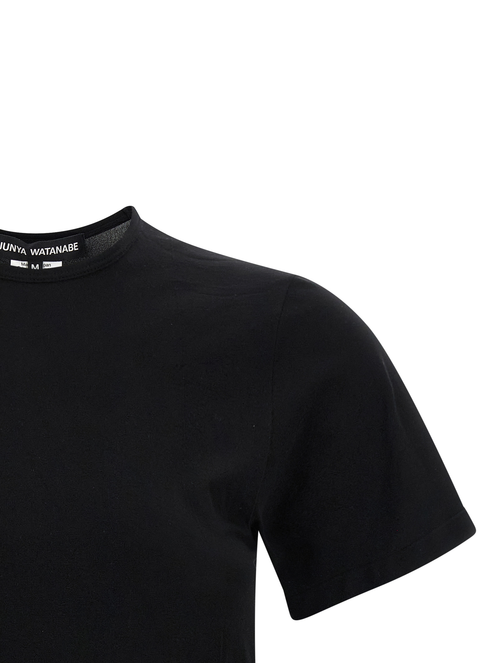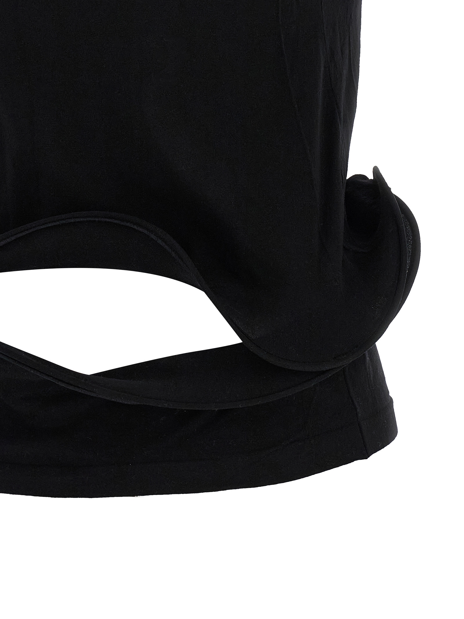 Crêpe T-shirt, crew neck, short sleeves, sculptural hem with wire structure and cut-out details.