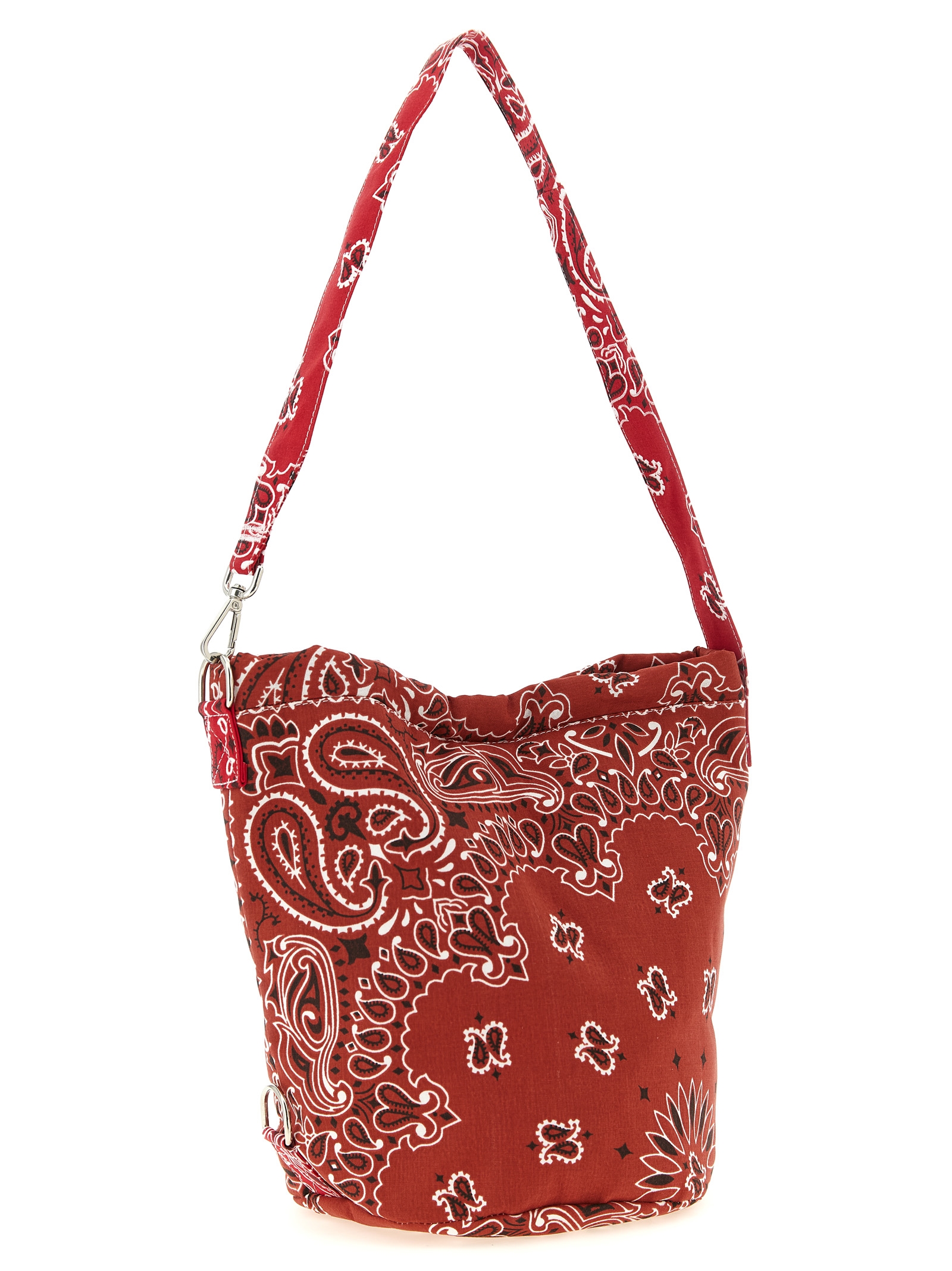 Seau’ bucket bag in all-over ‘Bandana’ print cotton, internal snap button closure, adjustable handle with two half-moon rings and a snap hook.