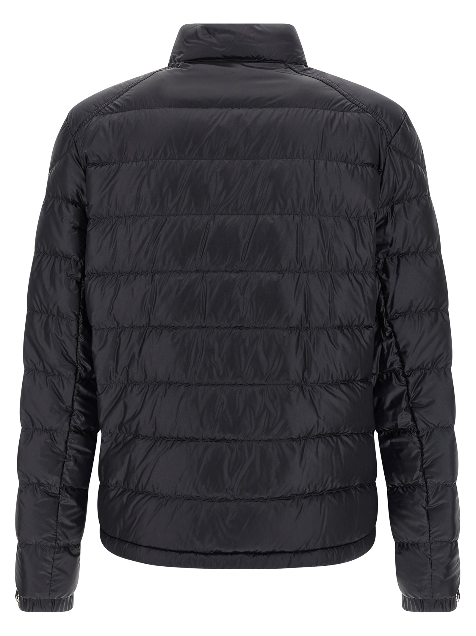 ‘Selves’ nylon quilted boudin jacket with goose down padding, high neck, front zip and snap button closure, pockets, long sleeves with adjustable cuff, felt logo patch, drawstring at the hem.