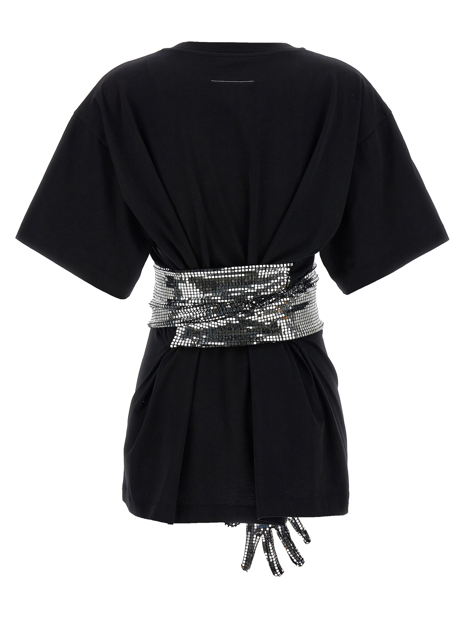 Cotton T-shirt with contrasting ‘Numeric Signature MM6’ front patch, crew neck, ‘White Stitch Line’ at the back, short sleeves and square sequin glove detail stitched at the waist.