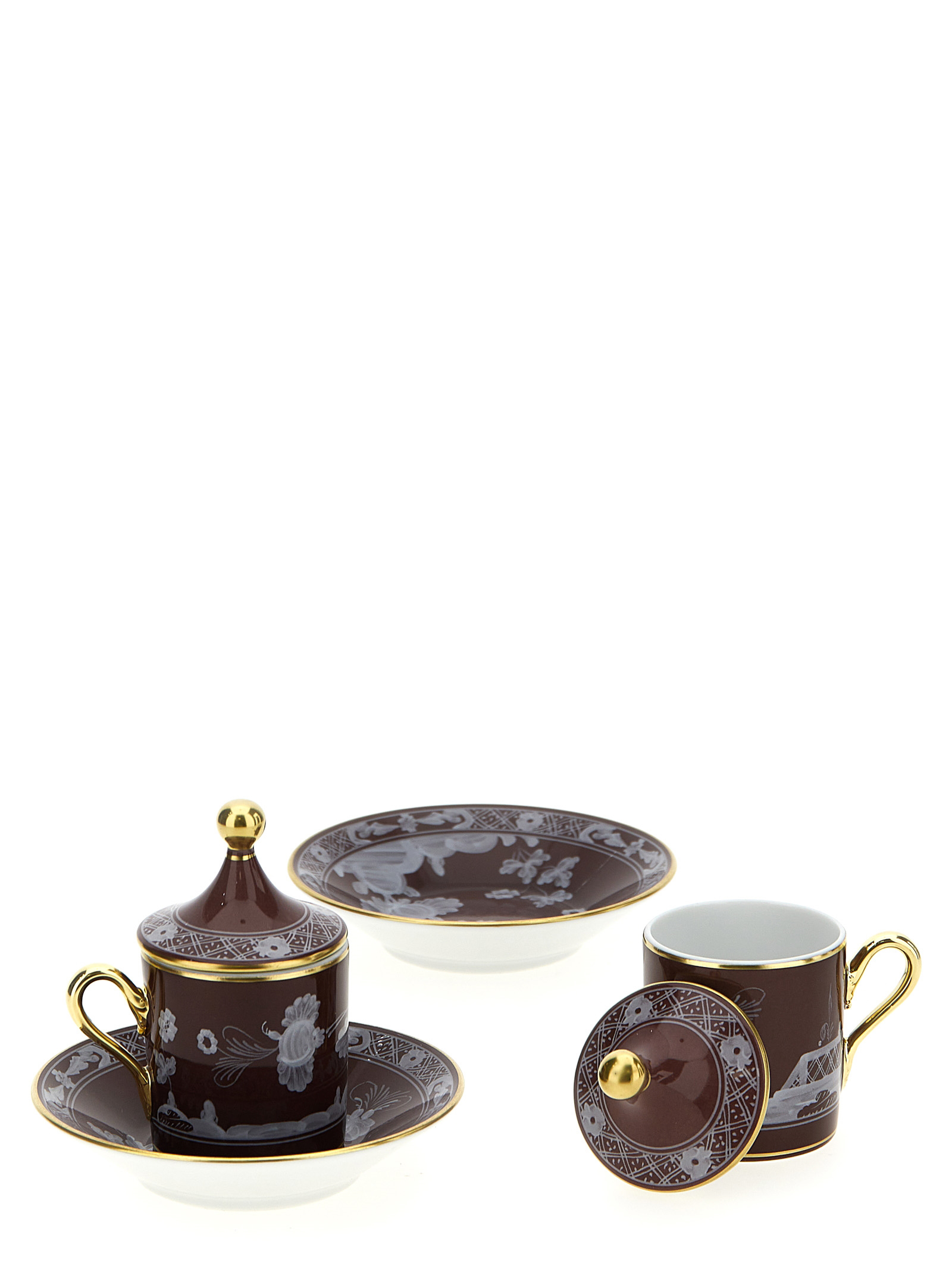 Coffee cup with saucer with Chestnut decoration and gold thread. ‘Oriente Italiano’ collection.