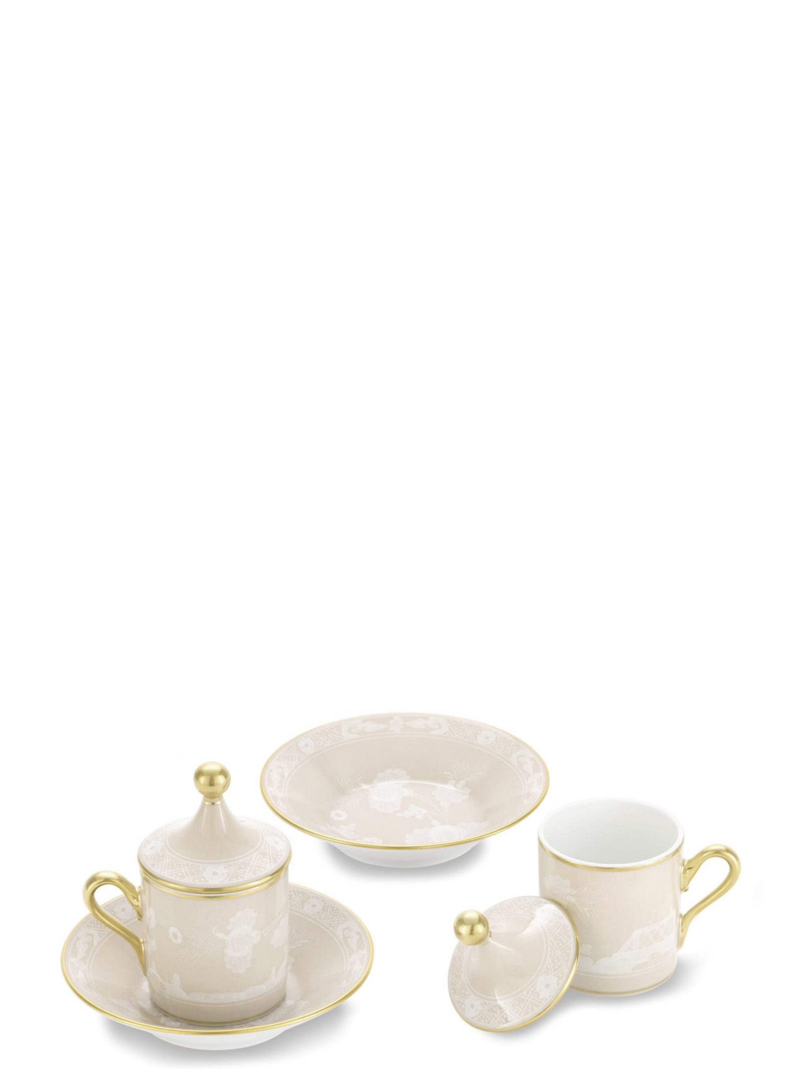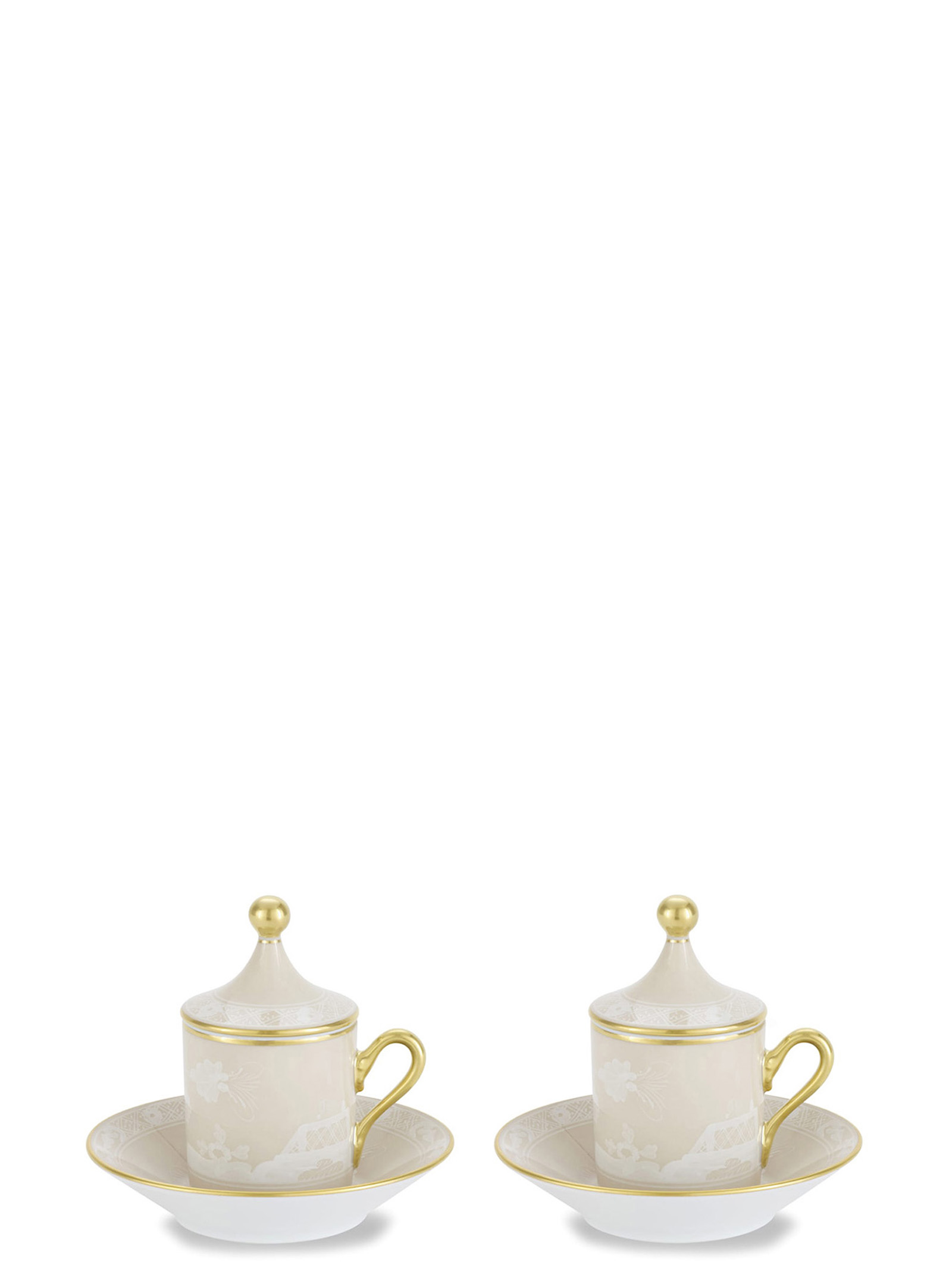 Coffee cup with saucer with meringue decoration and gold thread. ‘Oriente Italiano’ collection.