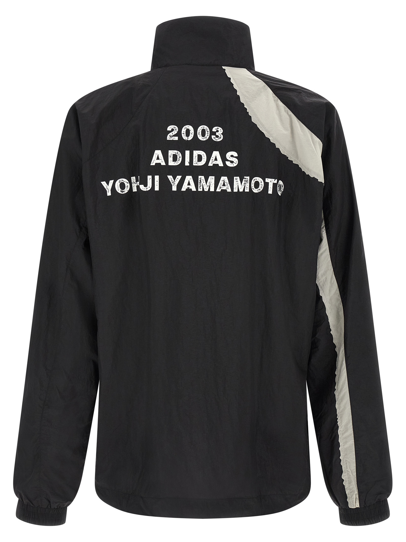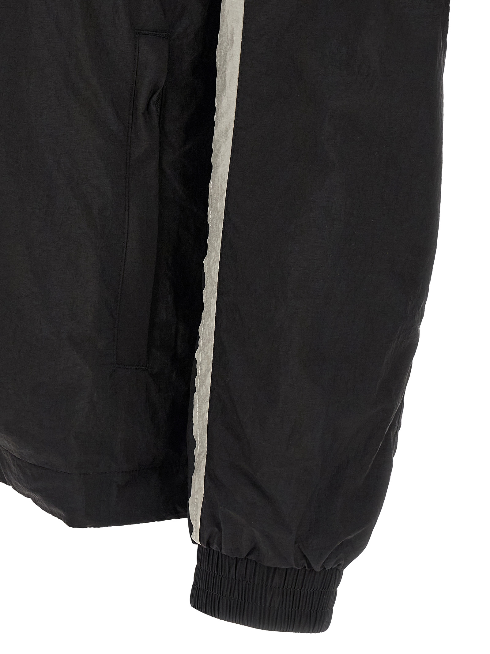 Ultra-light nylon ‘Shell’ jacket with water-repellent finish, contrasting EQT panels with raw cut edges designed to frayed slightly over time, standing collar, embossed logo and front zip closure, back serigraphed print, pockets, long sleeves with elastic cuffs, drawstring on the hem.