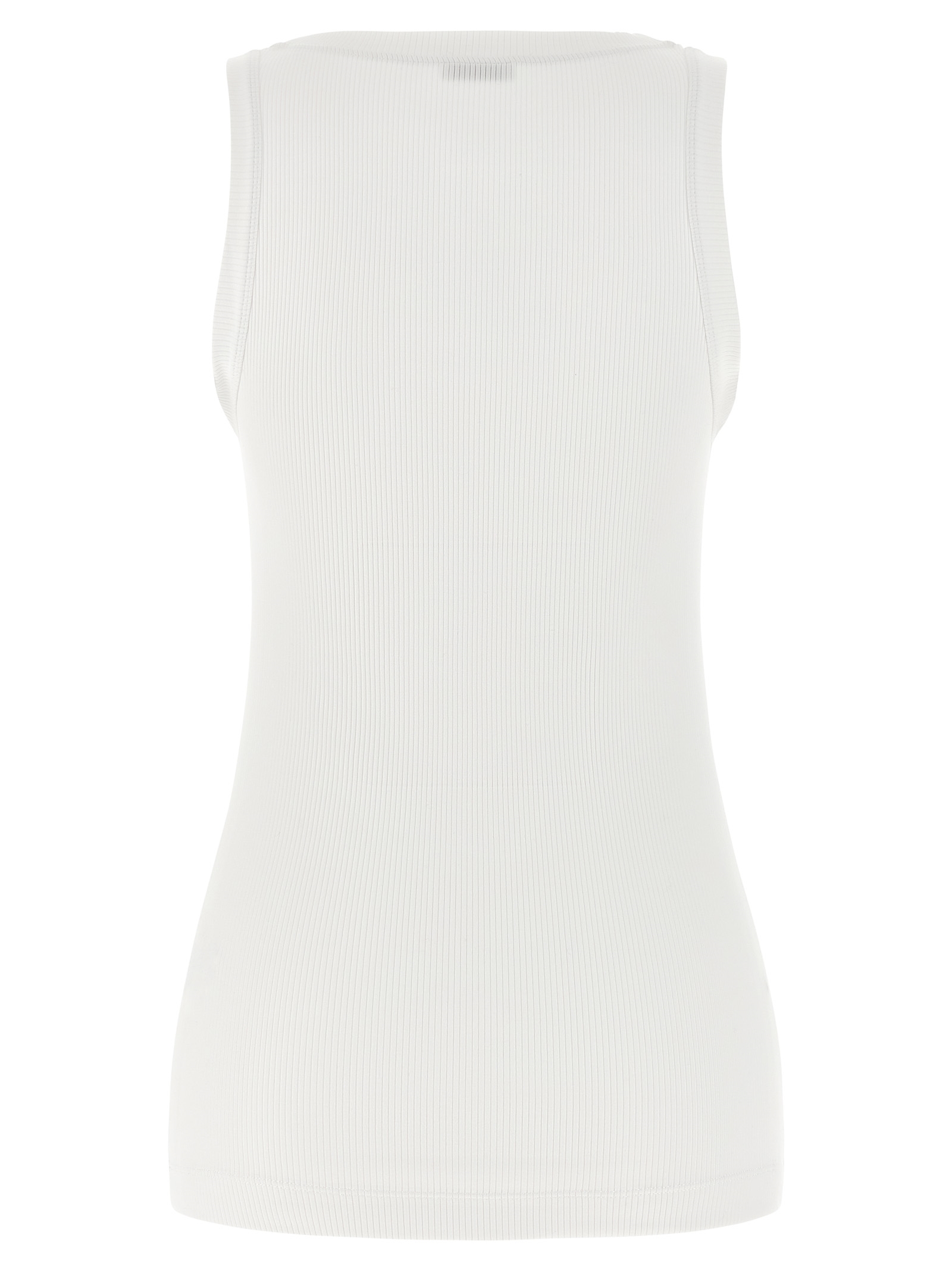 Stretch cotton ribbed jersey top with square neckline with Monile ‘Shiny Trim’ detail.