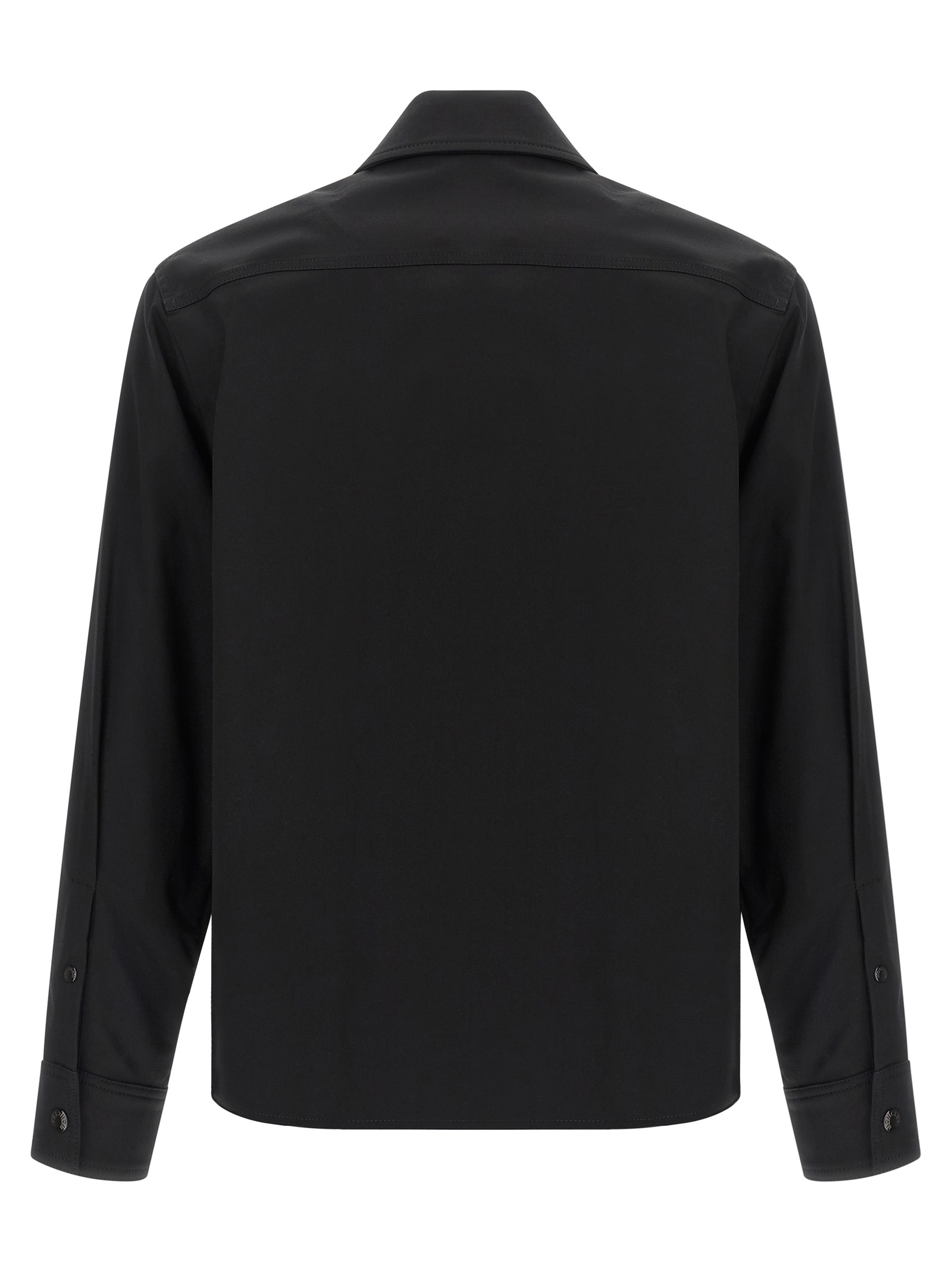 Cotton blend gabardine jacket, unlined, shirt collar, zip closure and felt logo patch on the front, pockets, long cuffed sleeves.