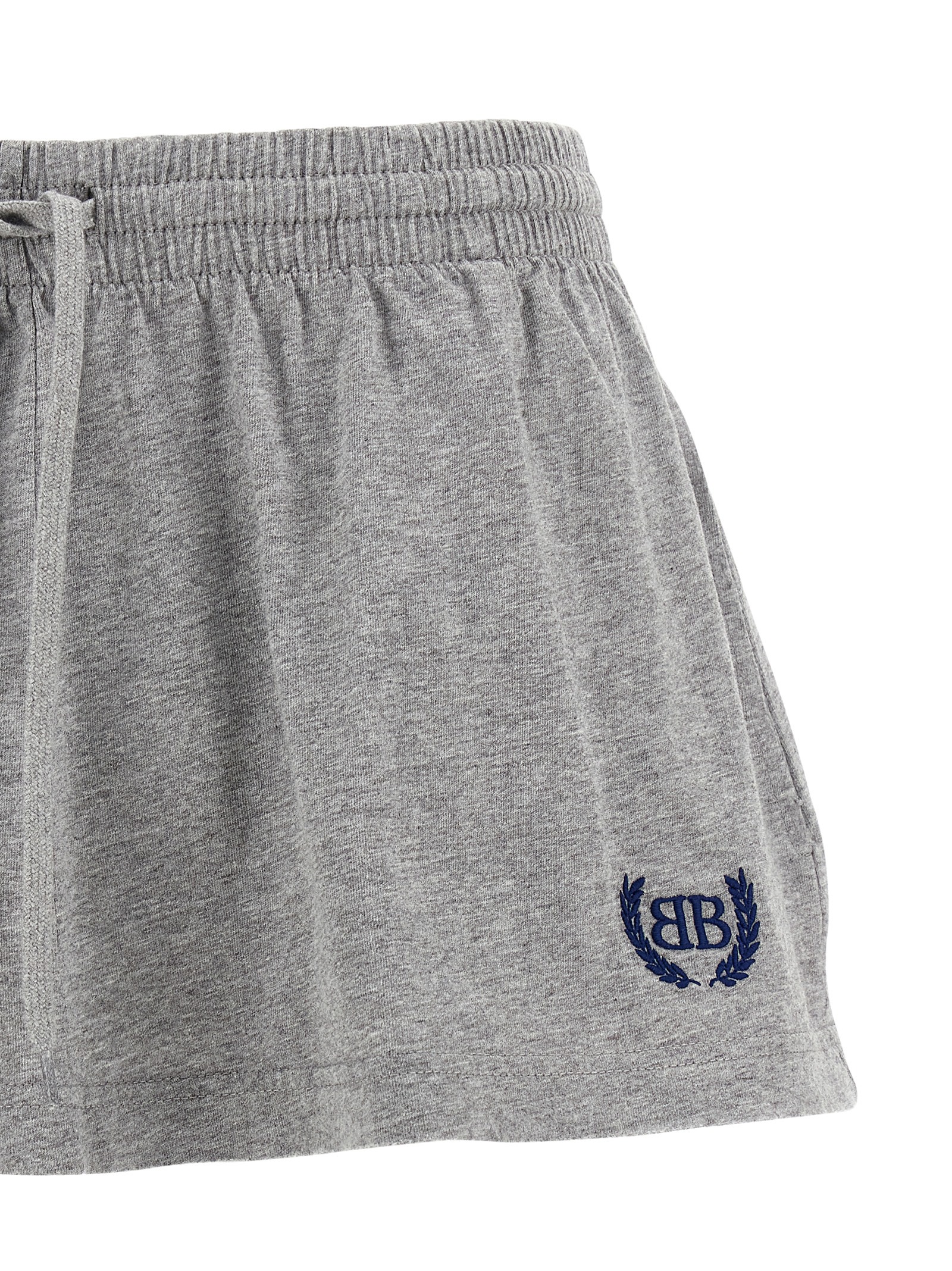 ‘Shorts Mini’ football miniskirt in cotton jersey with ‘Laurel’ embroidery, elastic waistband with adjustable drawstring, pockets.
